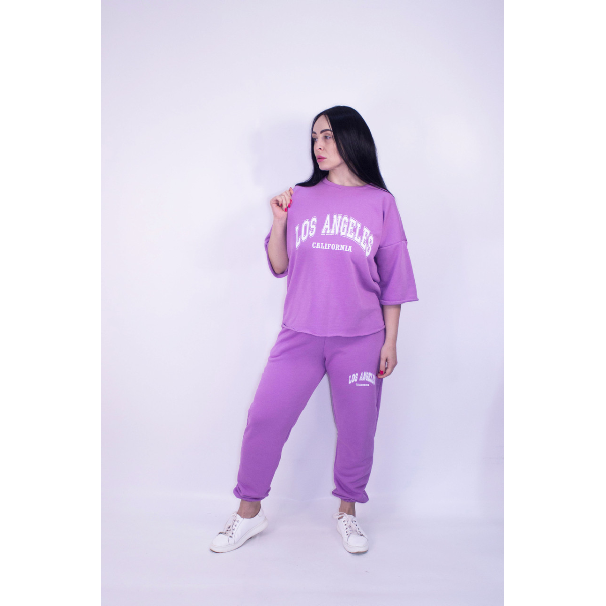 Костюм жіночий літній (футболка + штани) трикотажний Бузковий, XS-S