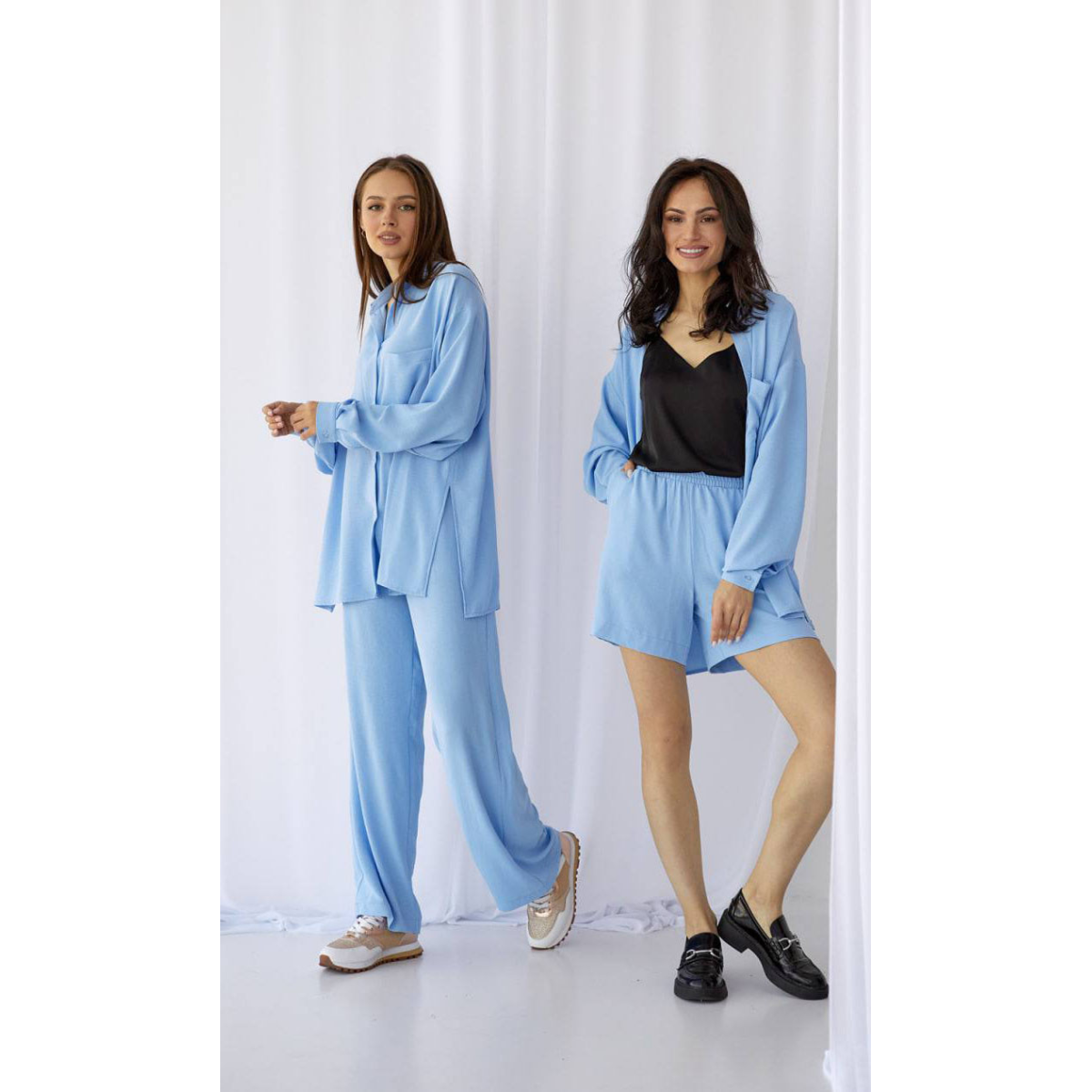 Костюм-трійка жіночий літній із шортами та штанами XL, Блакитний