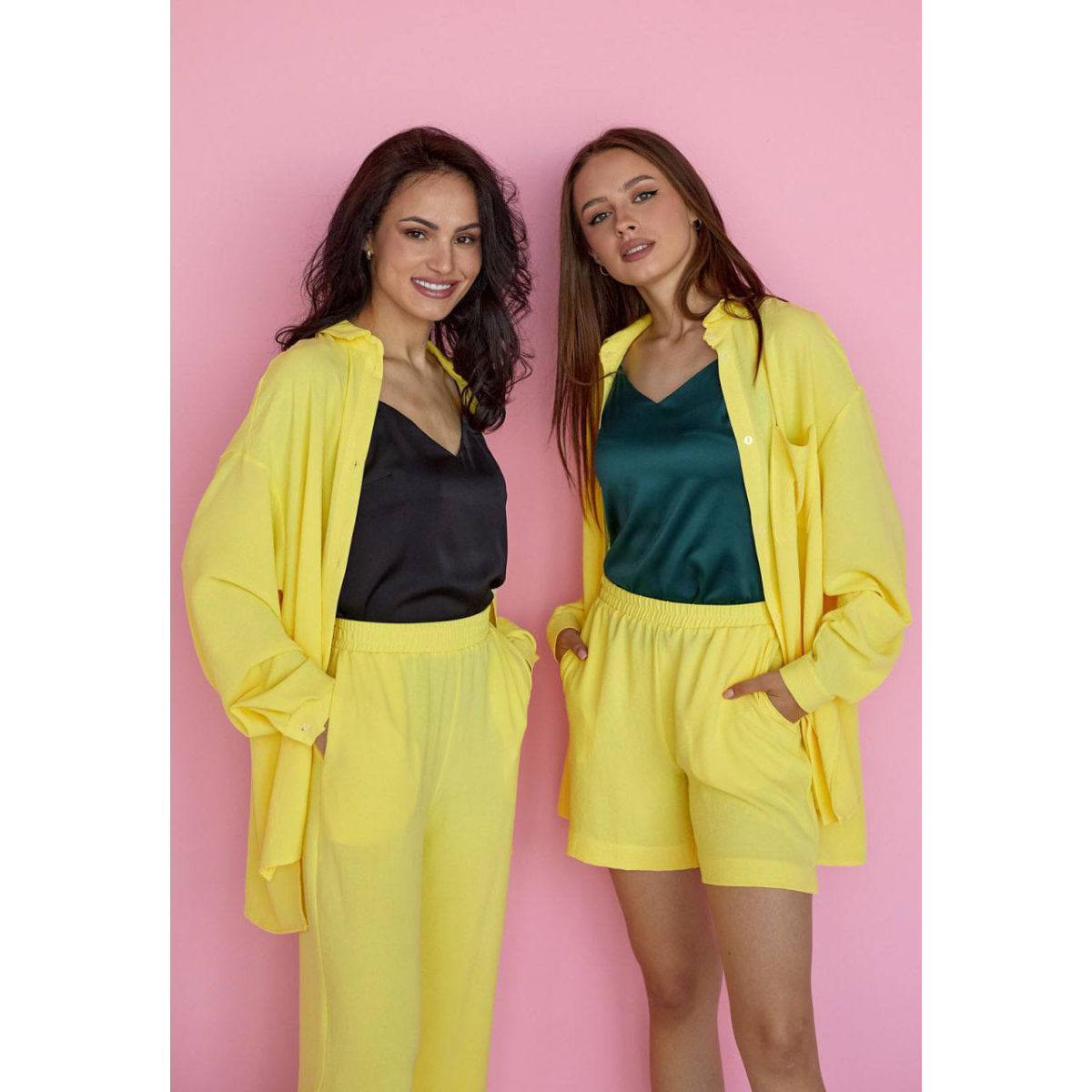 Костюм-трійка жіночий літній із шортами та штанами XS, Жовтий