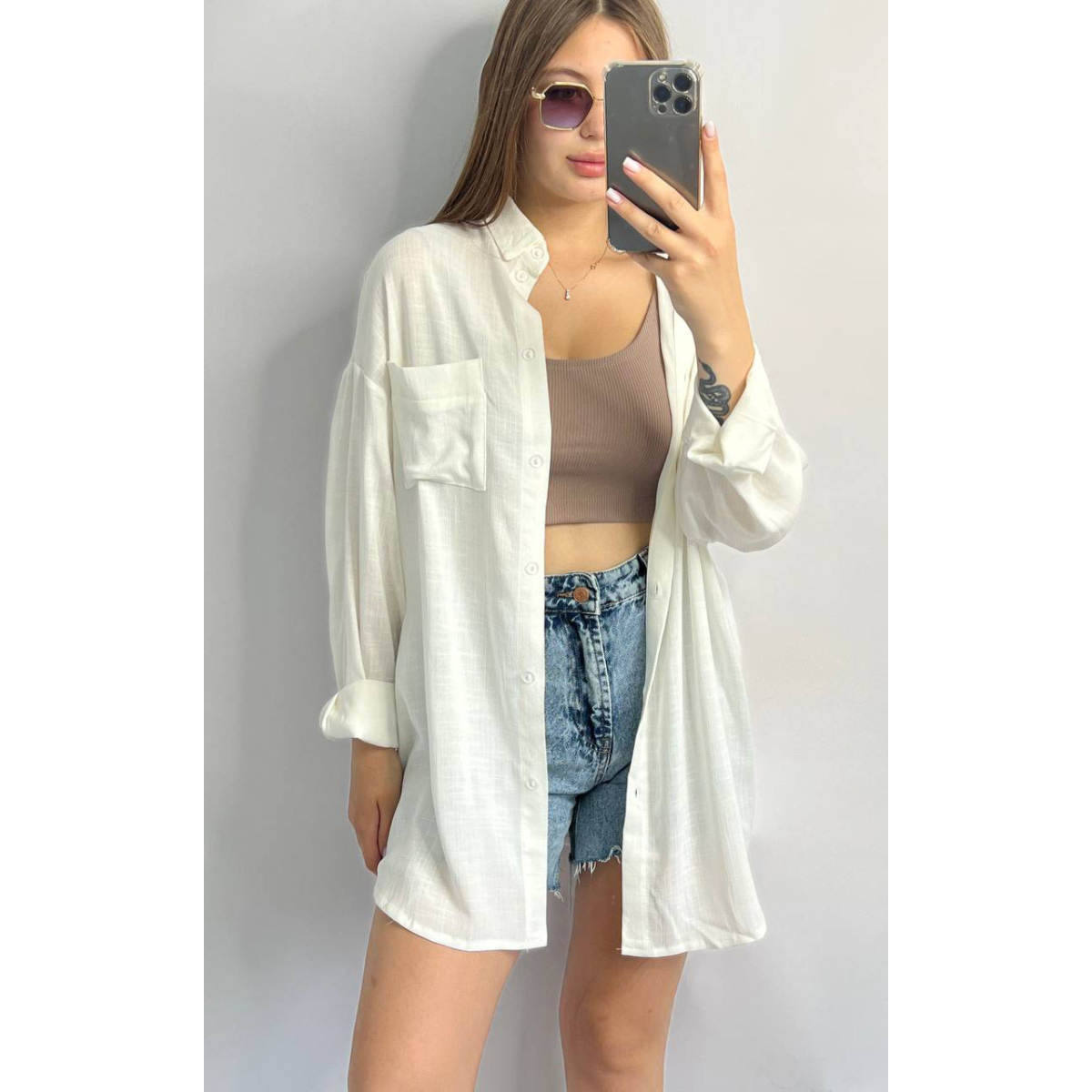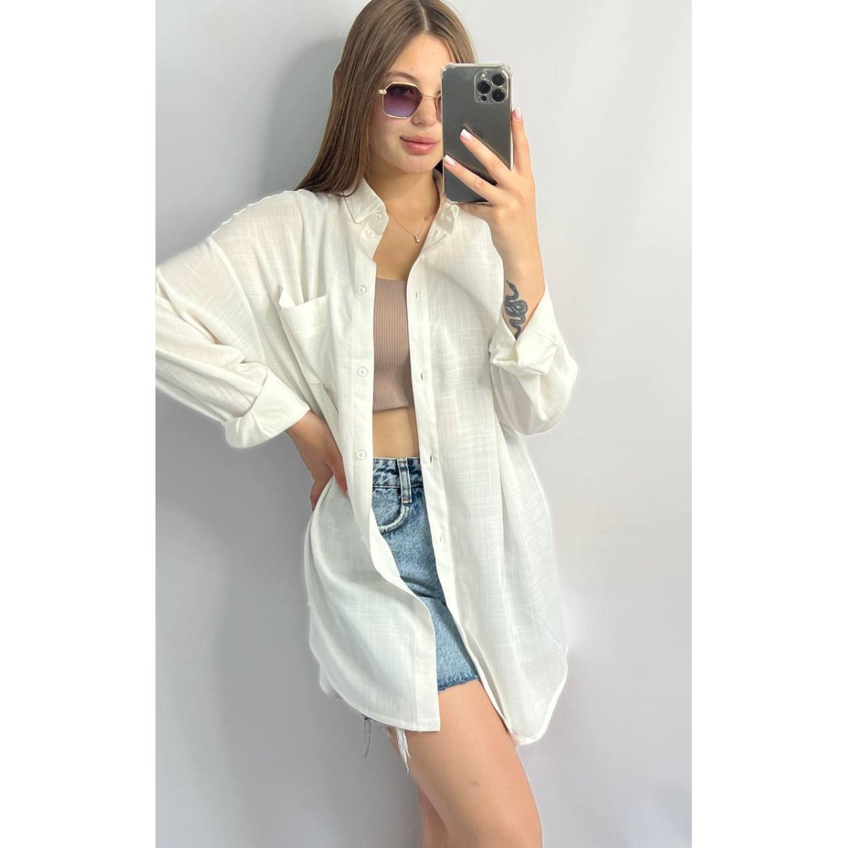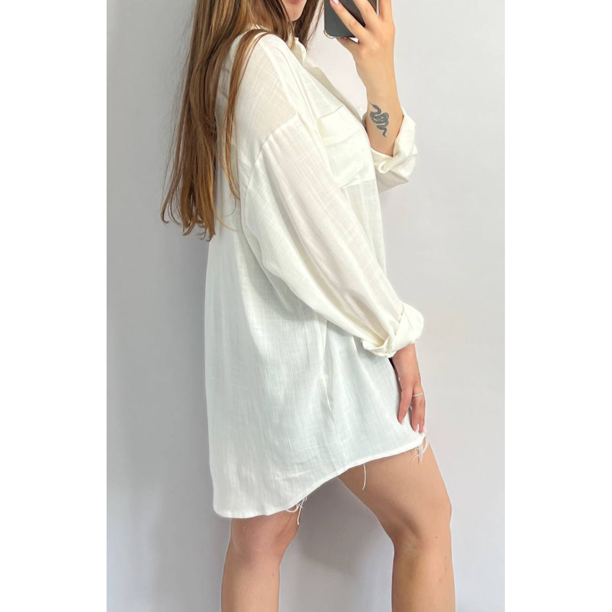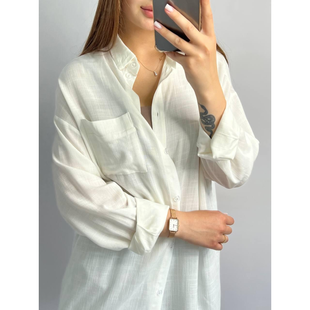 Сорочка жіноча оверсайз із льону біла М
