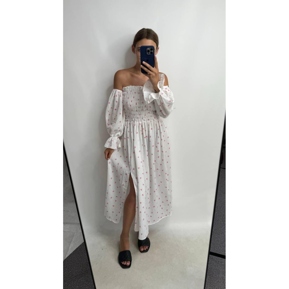 Жіноче літнє міді плаття муслін Рожеві серця, XS-S