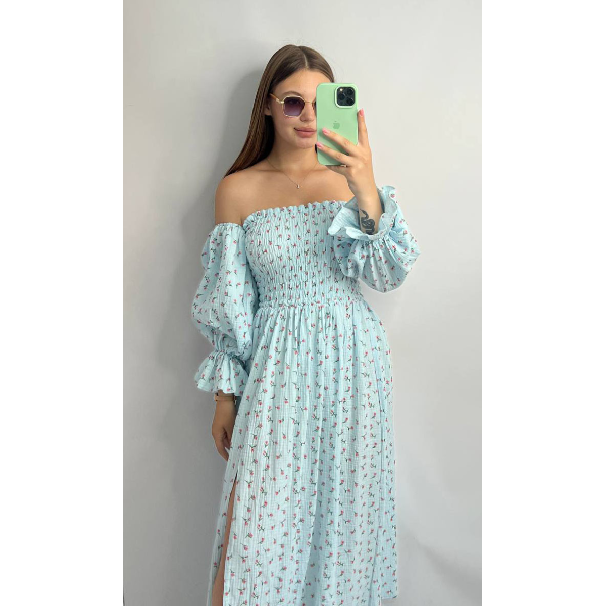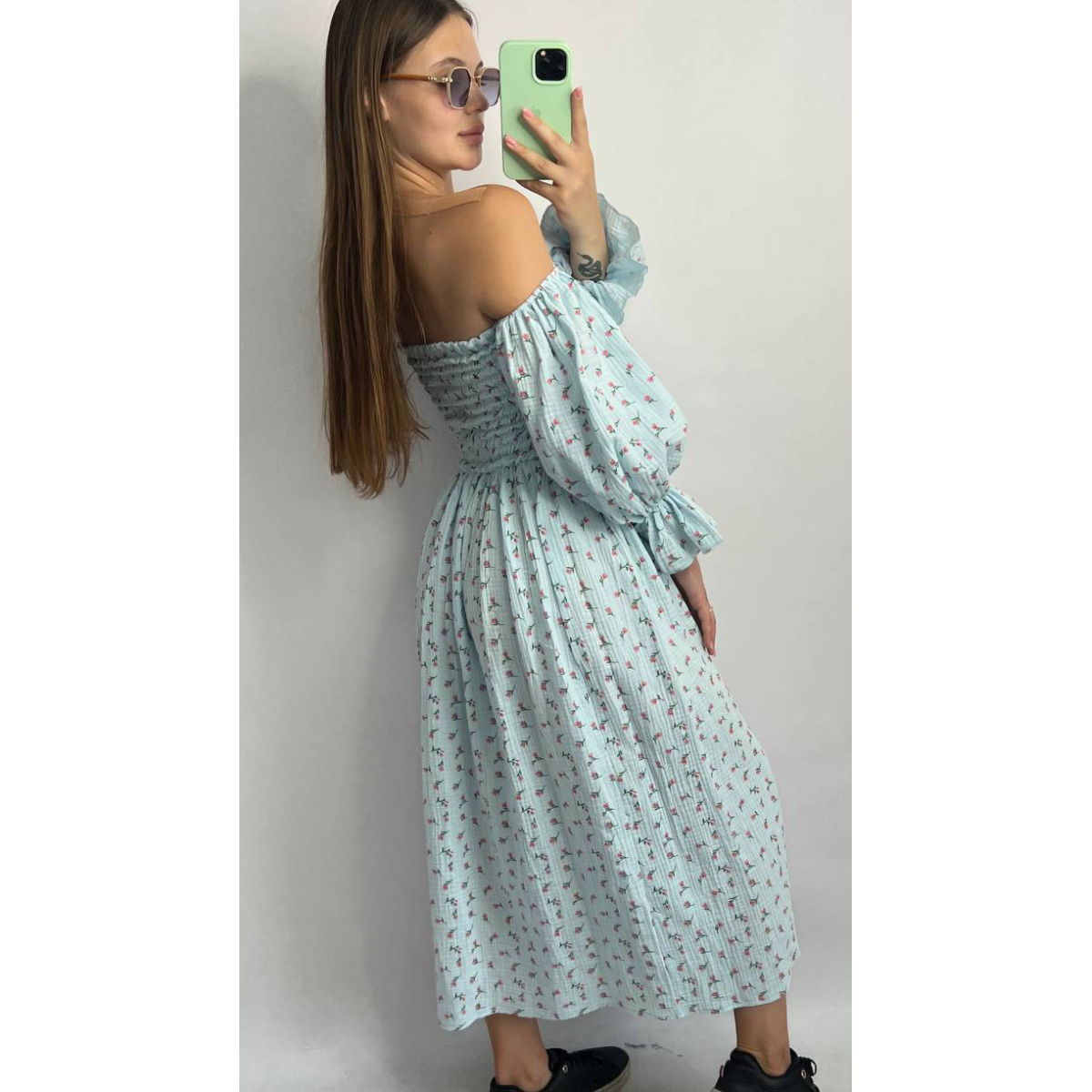 Жіноче літнє міді плаття муслін Блакитне, гілочки, XS-S