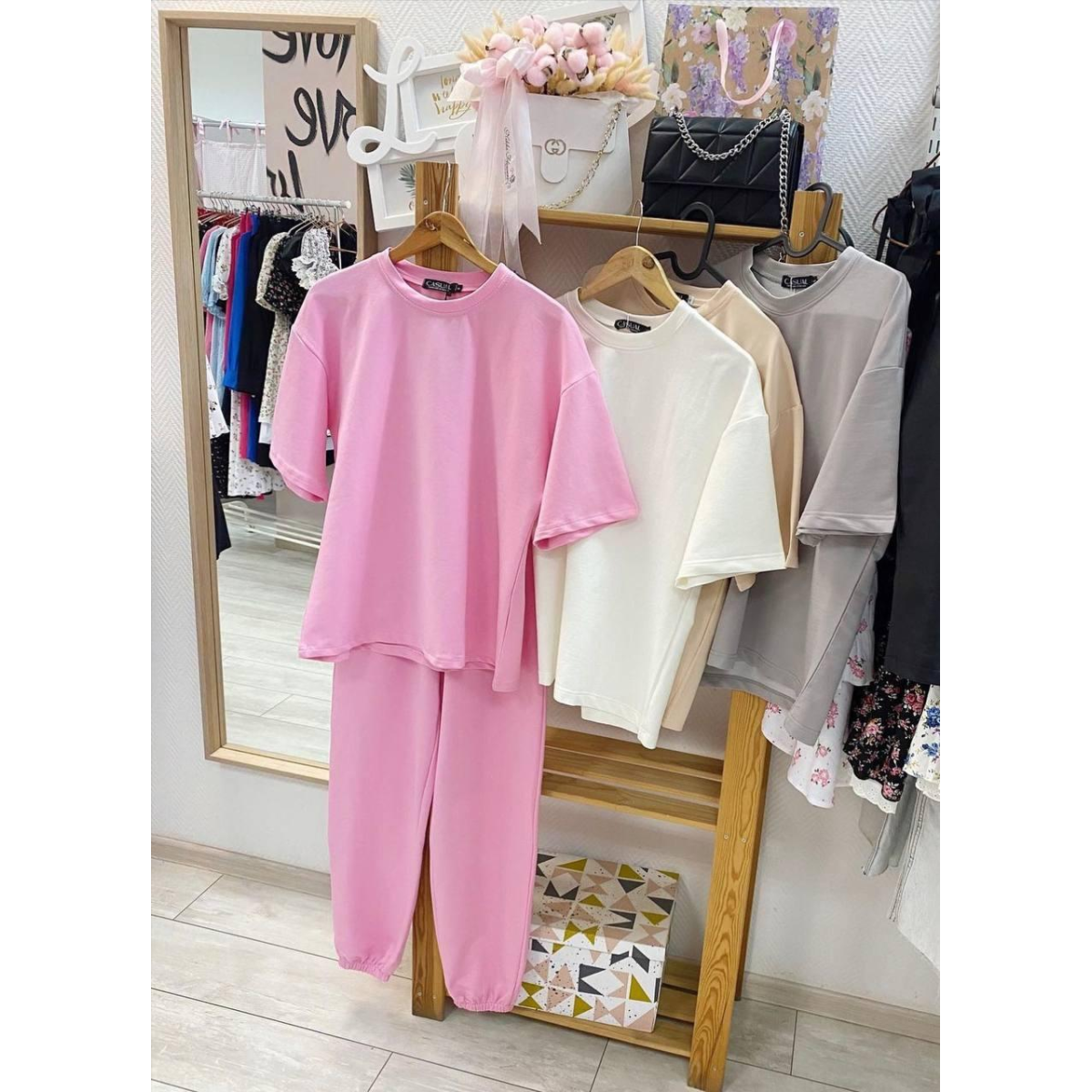 Модний і зручний жіночий костюм-двійка з тканини двунить – ідеальний вибір для тих, хто цінує комфорт, стиль та високу якість. Комплект складається з футболки вільного крою та стильних штанів хуліганів з карманами та резинкою на поясі. Чудово підходить для повсякденного носіння, прогулянок і відпочинку.