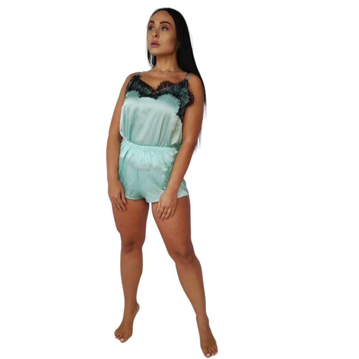Піжама жіноча шовкова блакитна майка та шорти 56