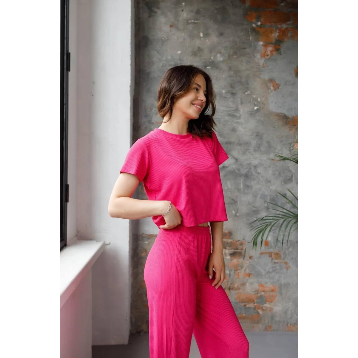 Жіночий легкий костюм у рубчик зі штанами Малиновий, XS-S