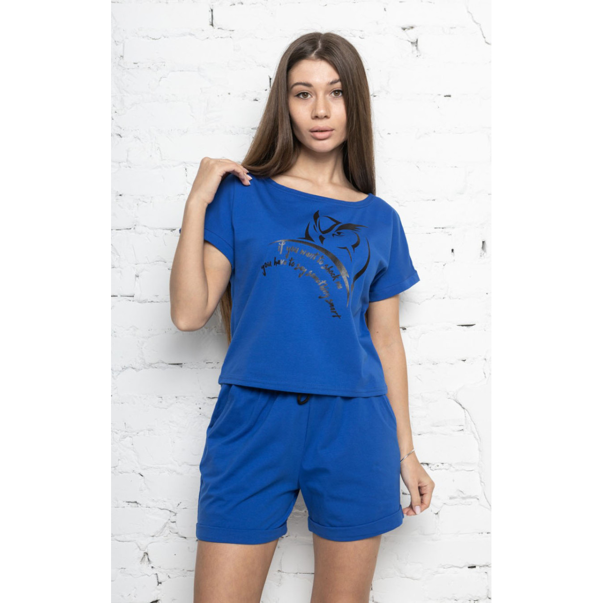 Стильний легкий костюм трикотаж Синій, S