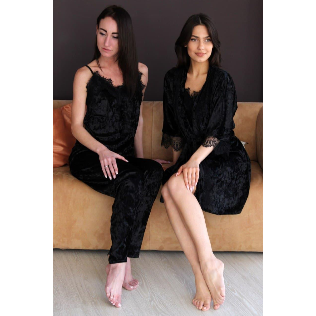 Хотите выглядеть роскошно дома? Теперь это очень просто с комплектом из мраморного велюра украшенного кружевом. В нем вы почувствуете себя невероятно обворожительной.