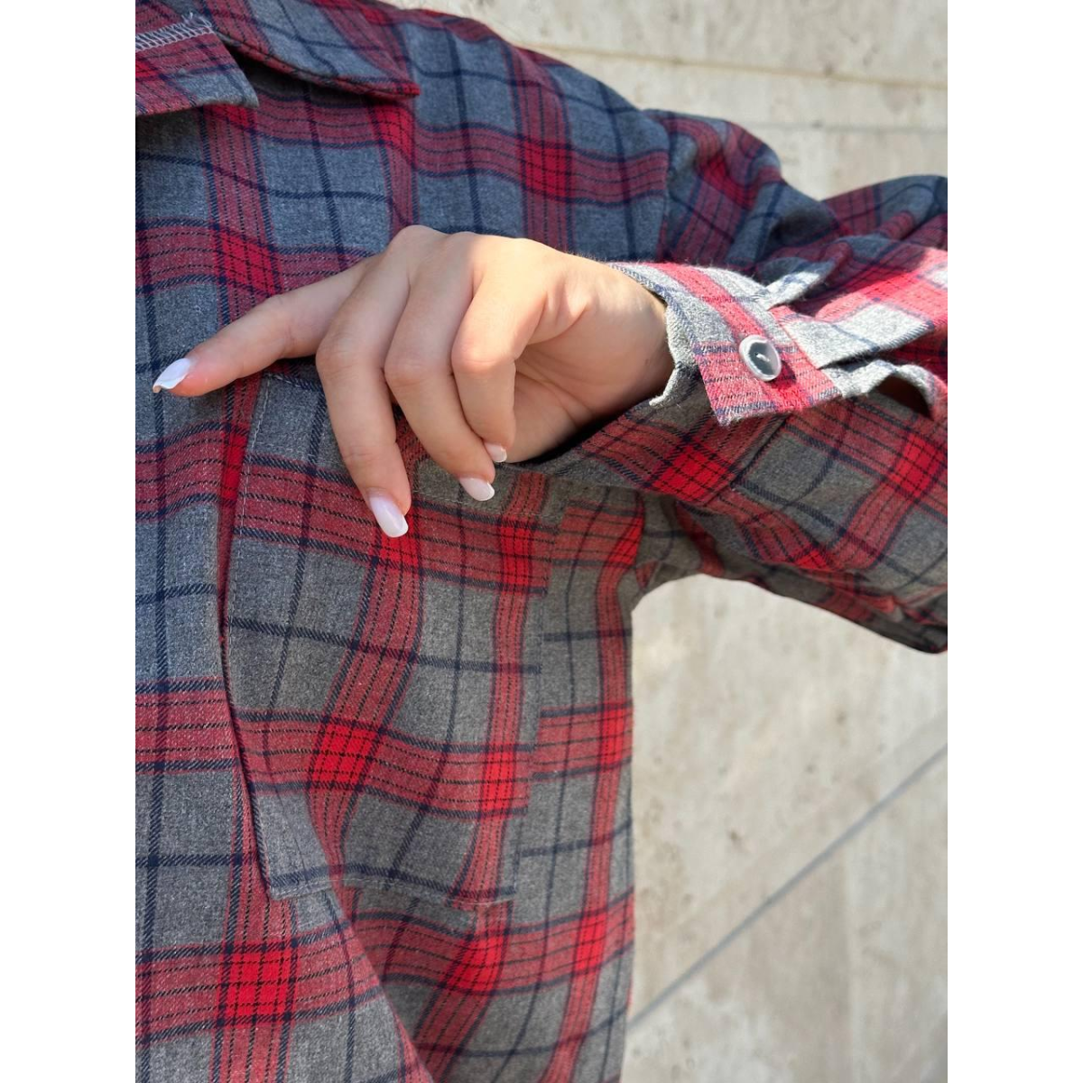 Сорочка жіноча оверсайз клітина, Червоний, 46/48