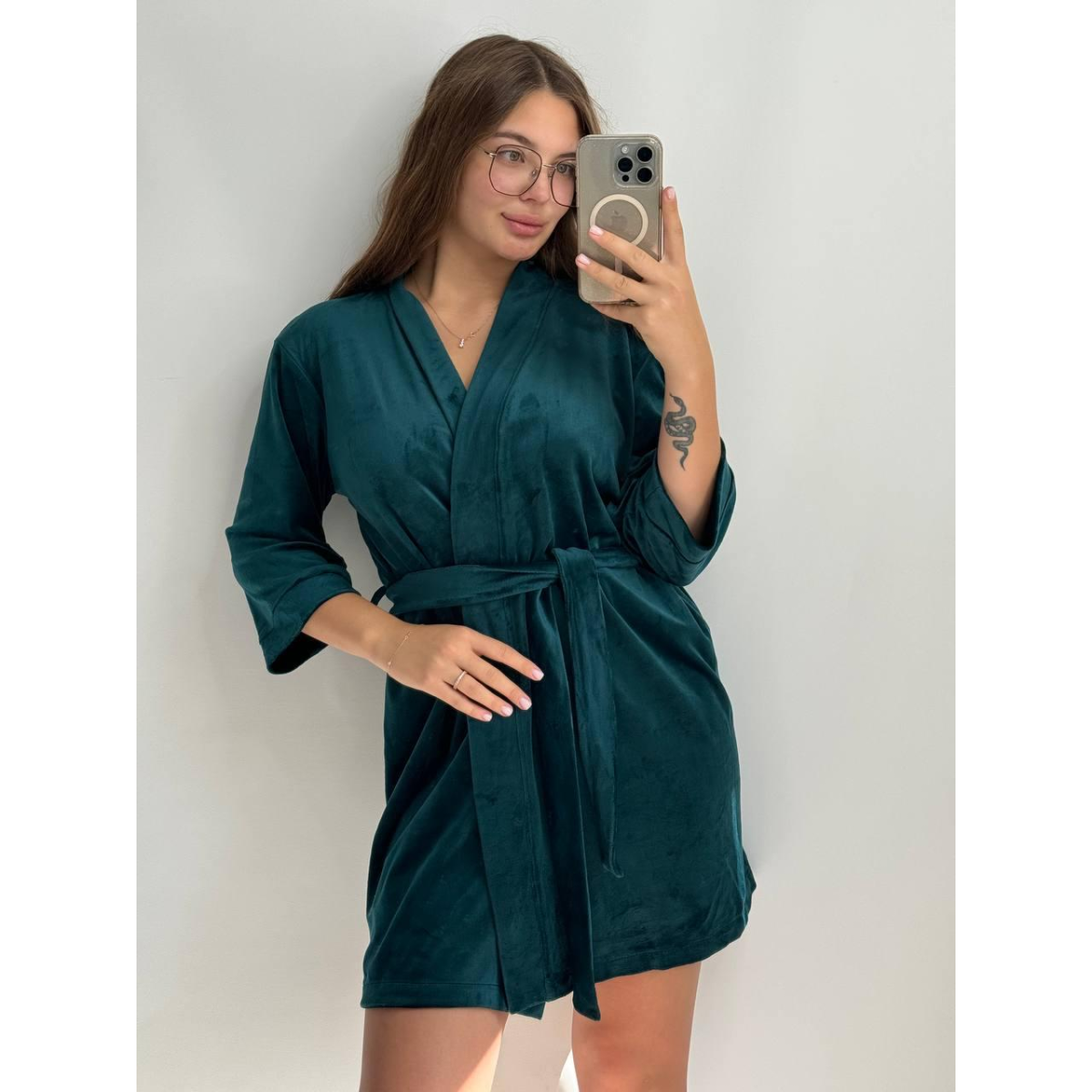 Халат жіночий плюш велюр під пояс Смарагд, L