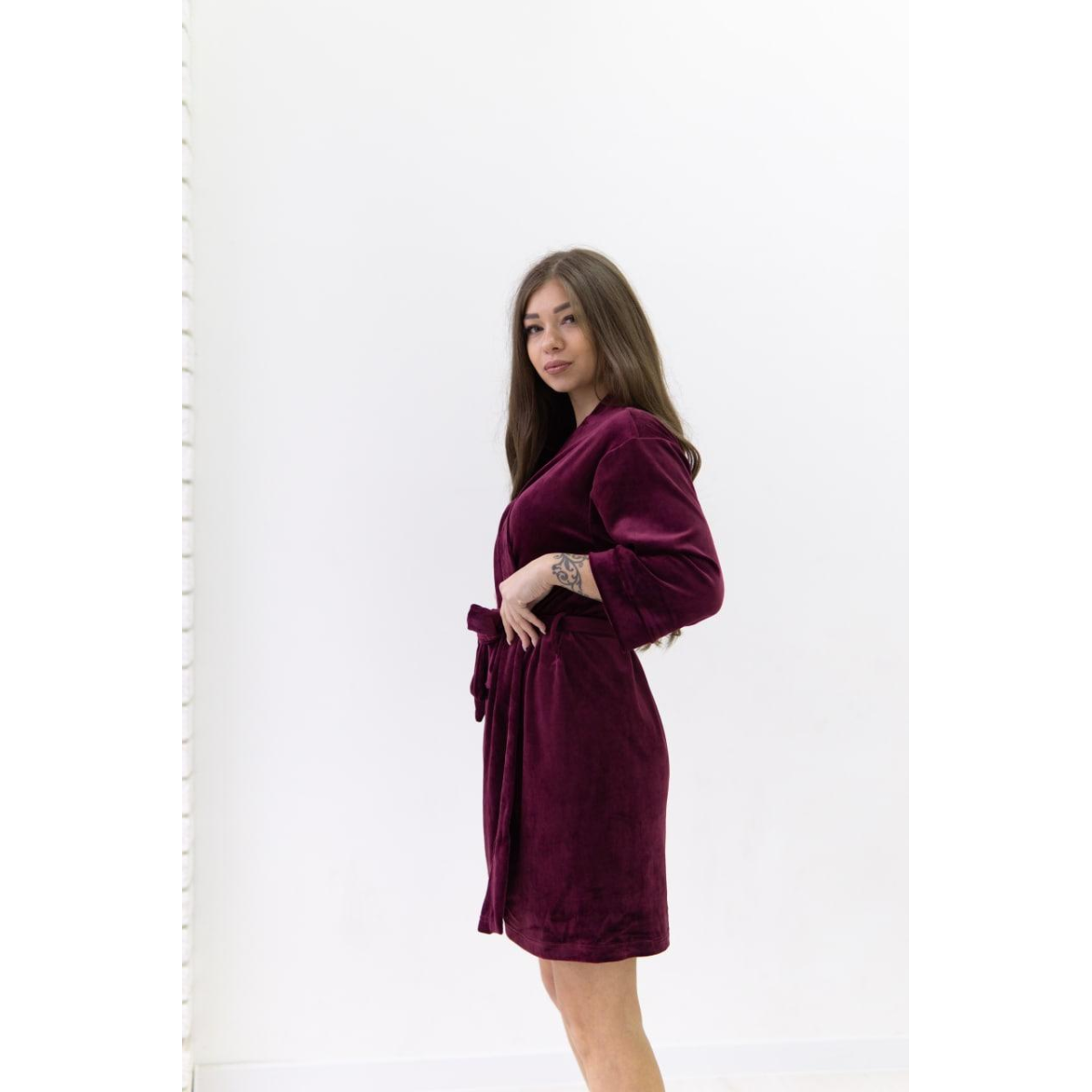Халат жіночий плюш велюр під пояс Бордо, XL