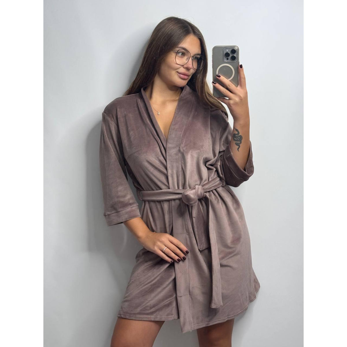 Халат жіночий плюш велюр під пояс Мокко, M