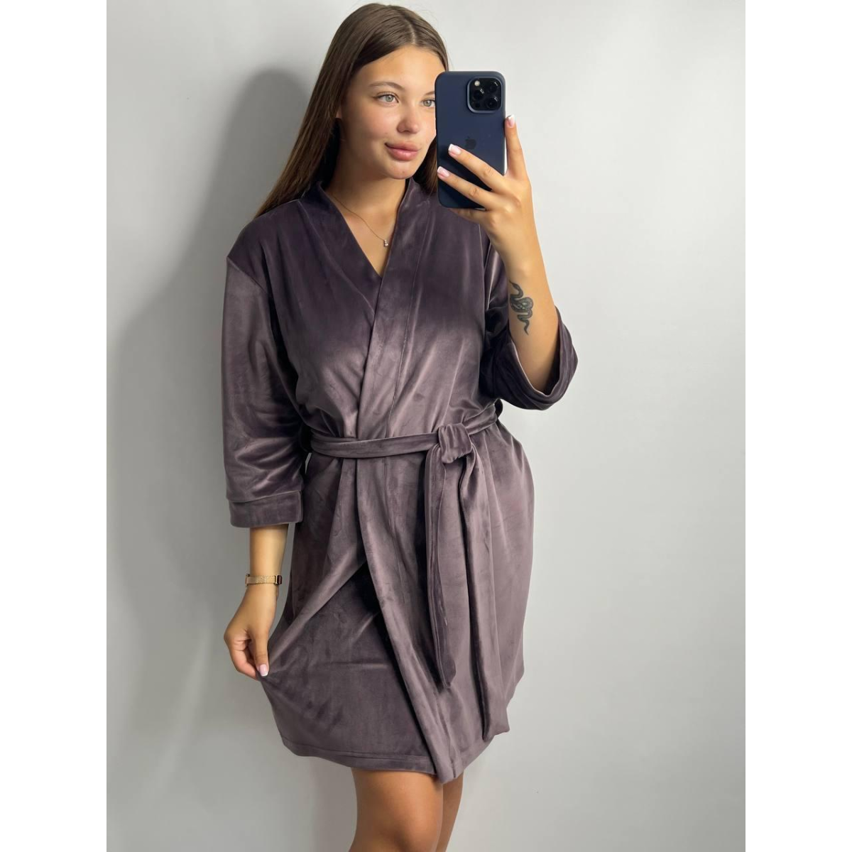 Халат жіночий плюш велюр під пояс Темний-шоколад, M