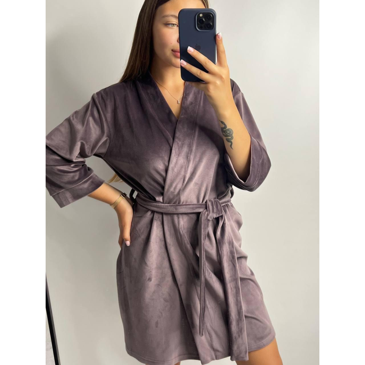Халат жіночий плюш велюр під пояс Темний-шоколад, XL