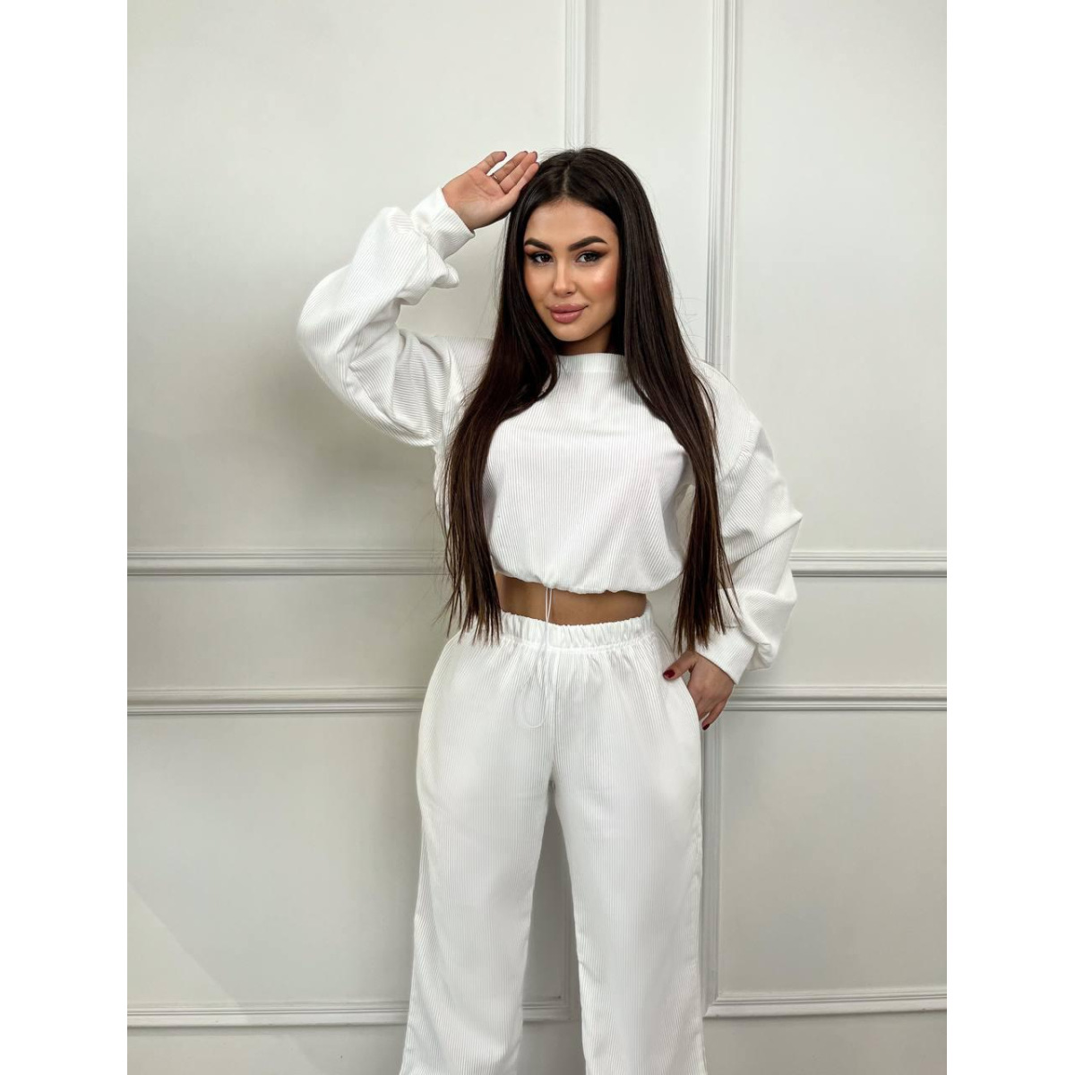 Стильний костюм вельвет у рубчик Молочний, 48/52