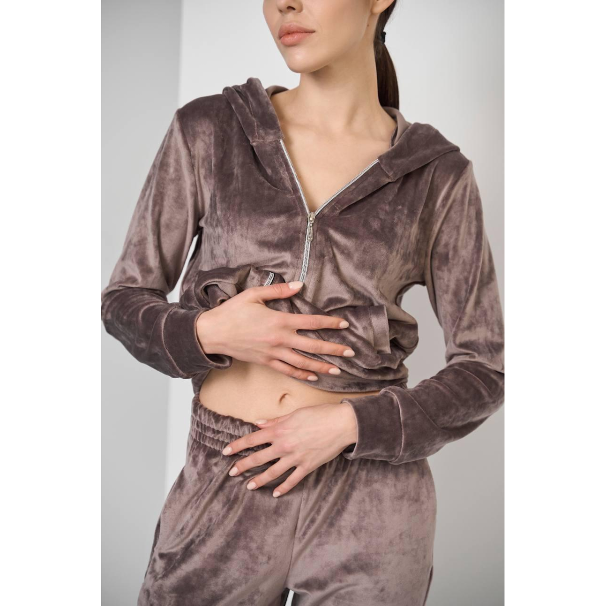 Жіночий велюровий костюм на змійці з капюшоном Шоколадний, L