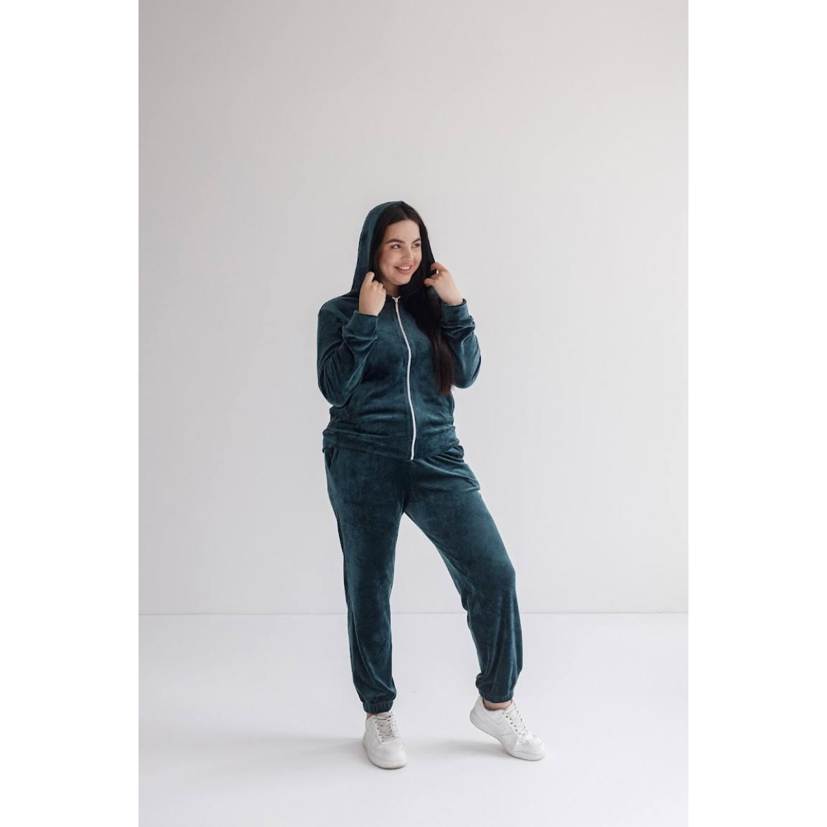 Жіночий велюровий костюм на змійці з капюшоном Смарагдовий, XXL