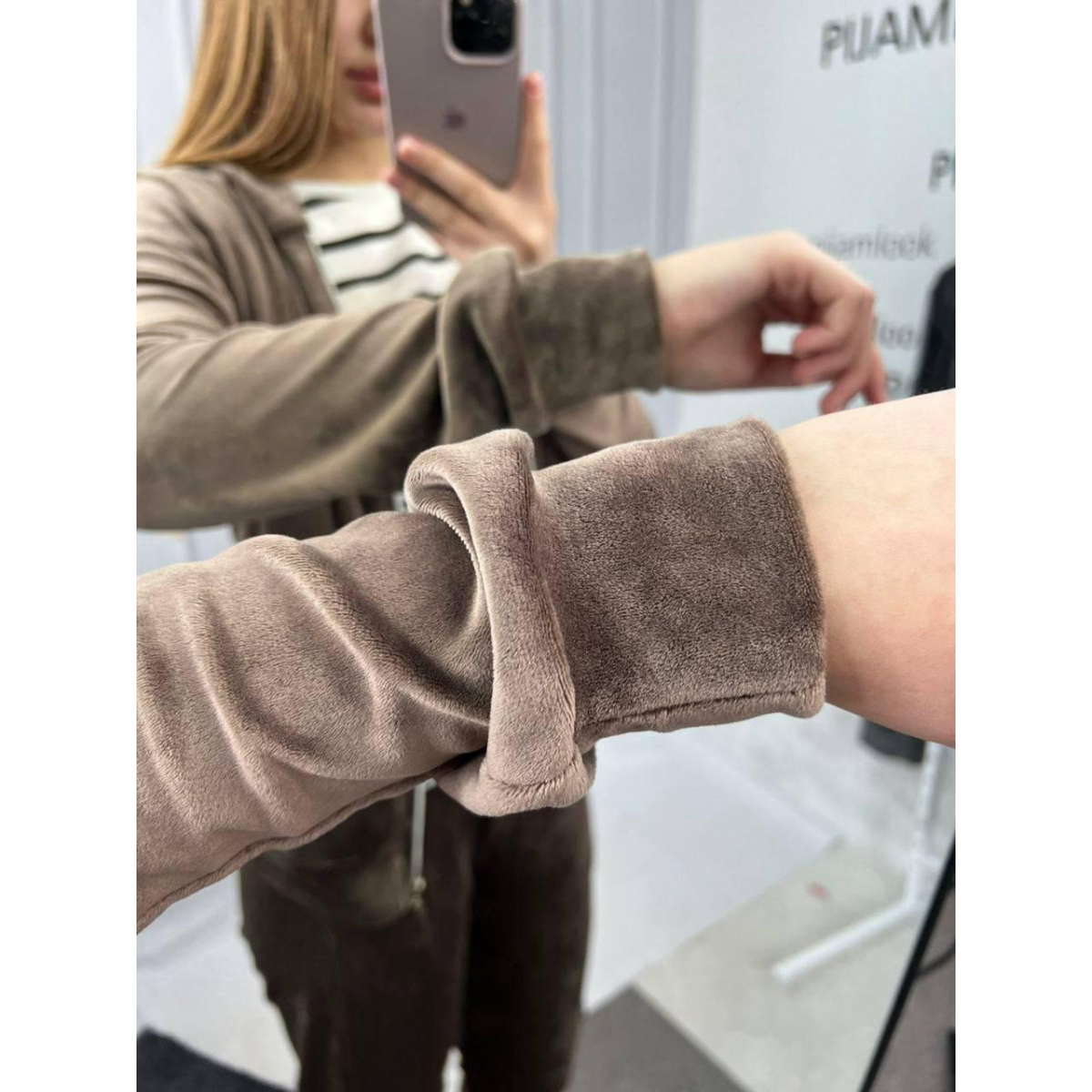 Жіночий велюровий костюм на змійці з капюшоном Коричневий, XXL