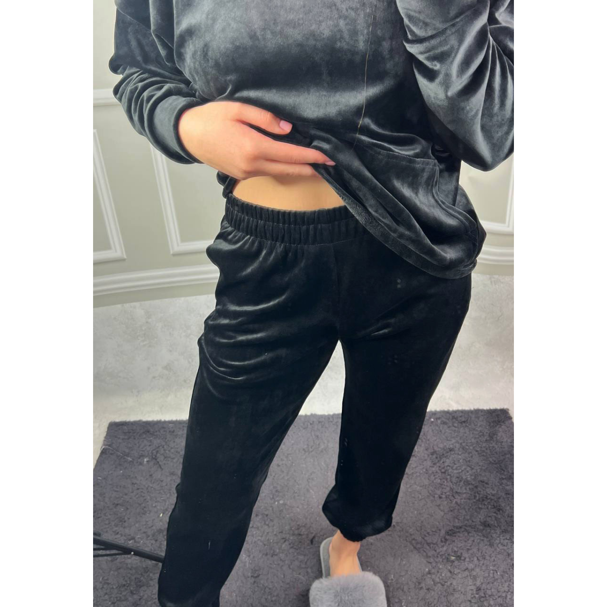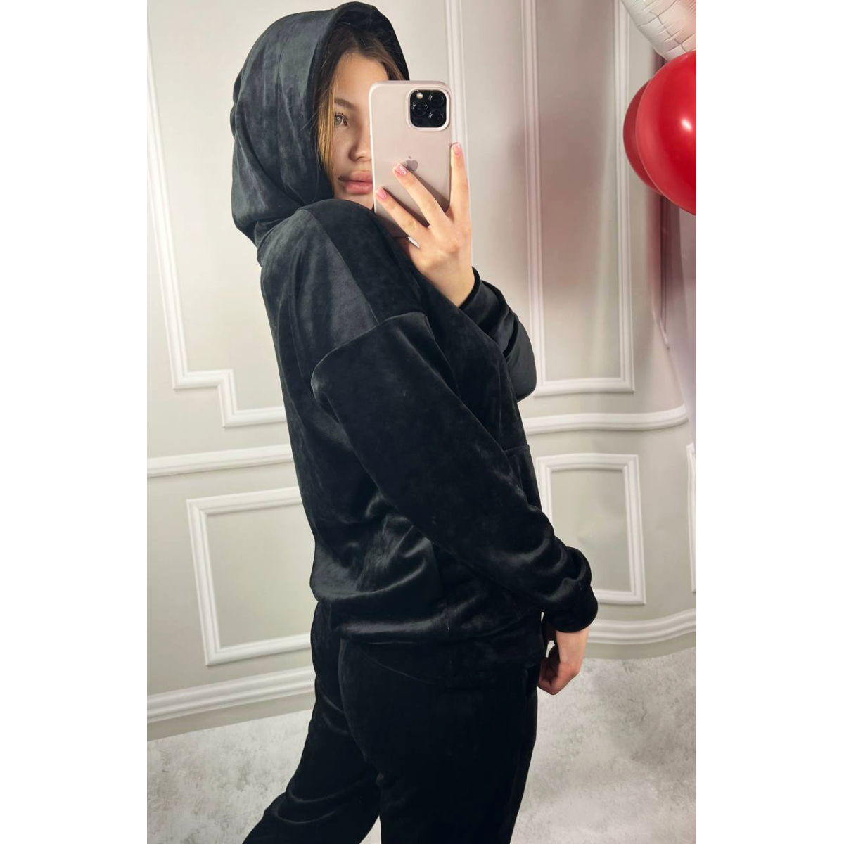 Жіночий велюровий костюм з капюшоном, чорний XS
