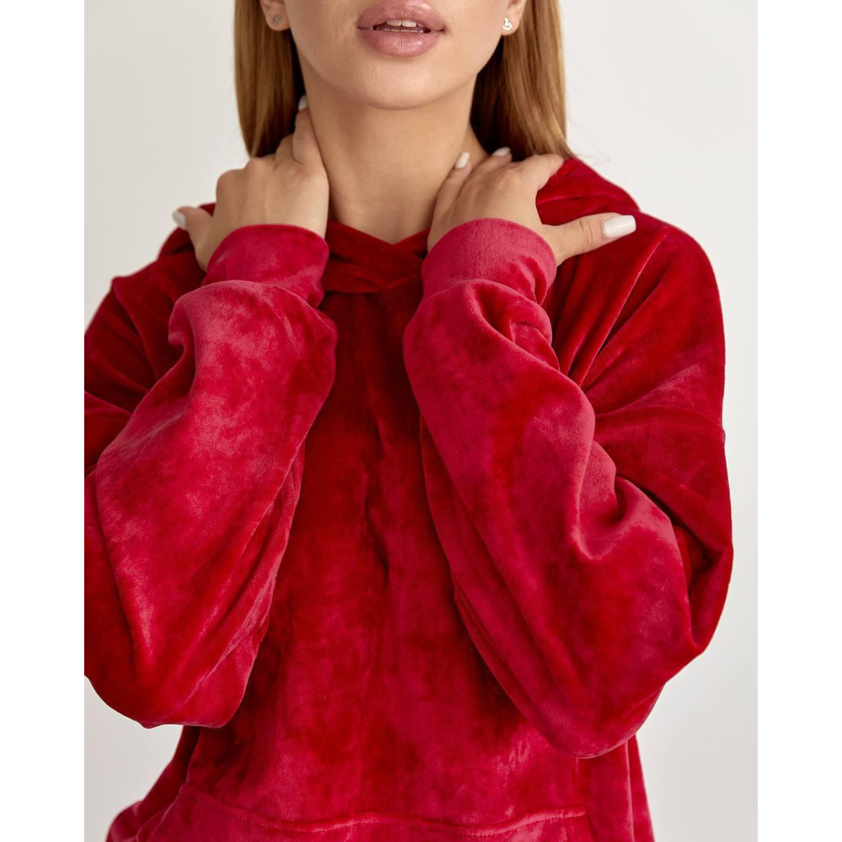Жіночий велюровий костюм із капюшоном Вишневий, XL