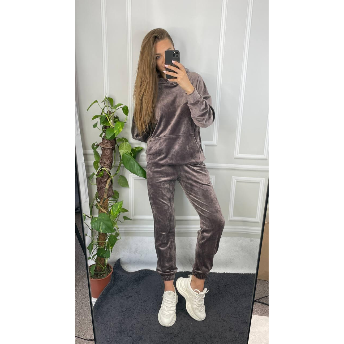 Жіночий велюровий костюм із капюшоном Шоколадний, S
