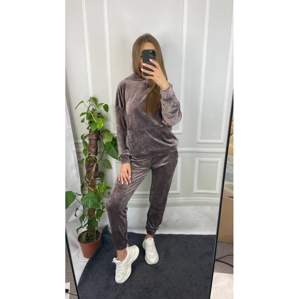Жіночий велюровий костюм із капюшоном Шоколадний, M