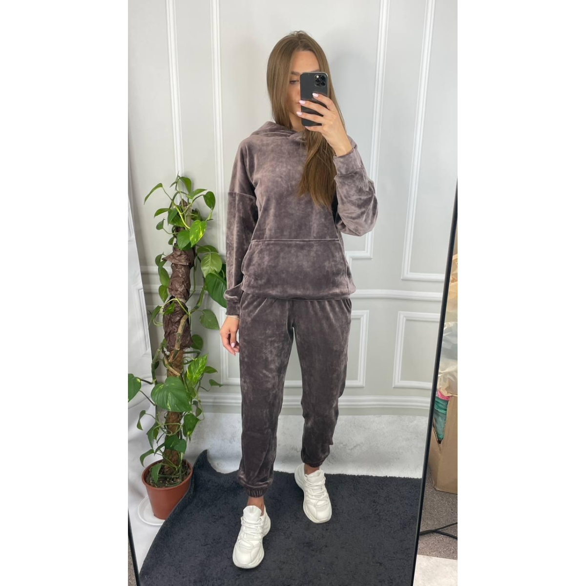 Жіночий велюровий костюм із капюшоном Шоколадний, L
