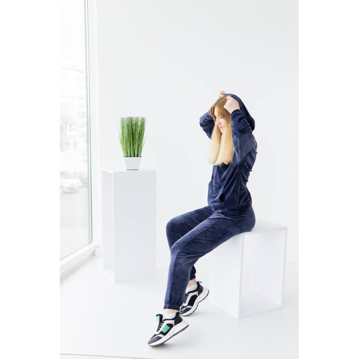 Жіночий велюровий костюм із капюшоном Синій, M