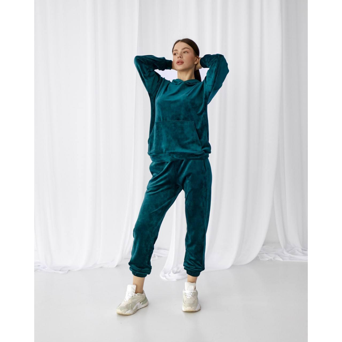 Жіночий велюровий костюм із капюшоном Смарагдовий, S