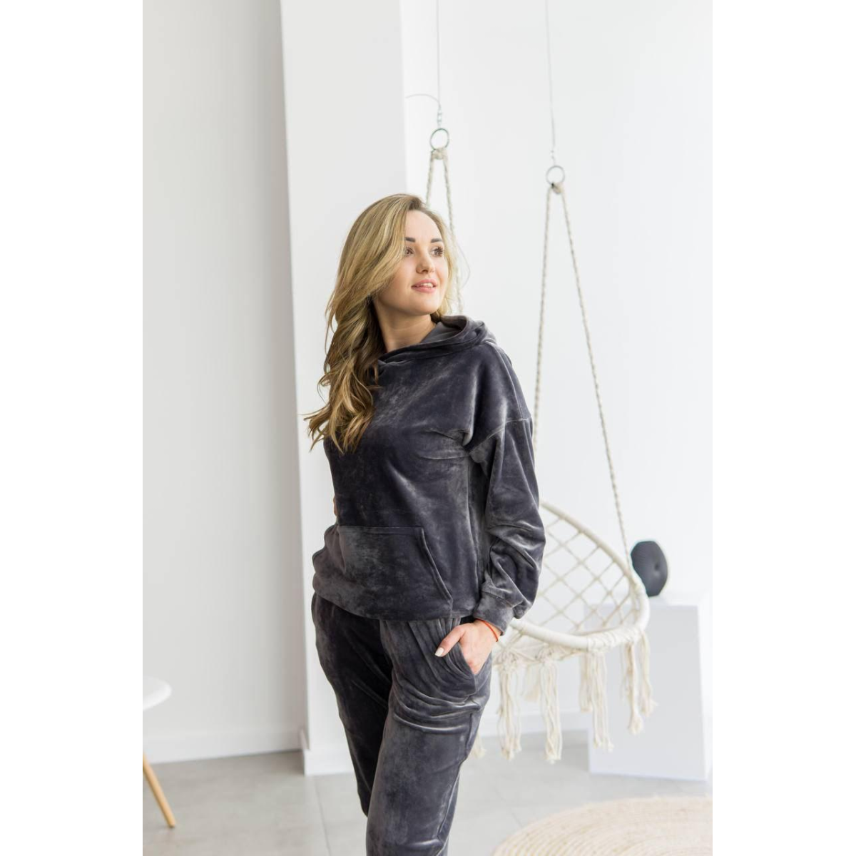 Жіночий велюровий костюм із капюшоном Графітовий, XS