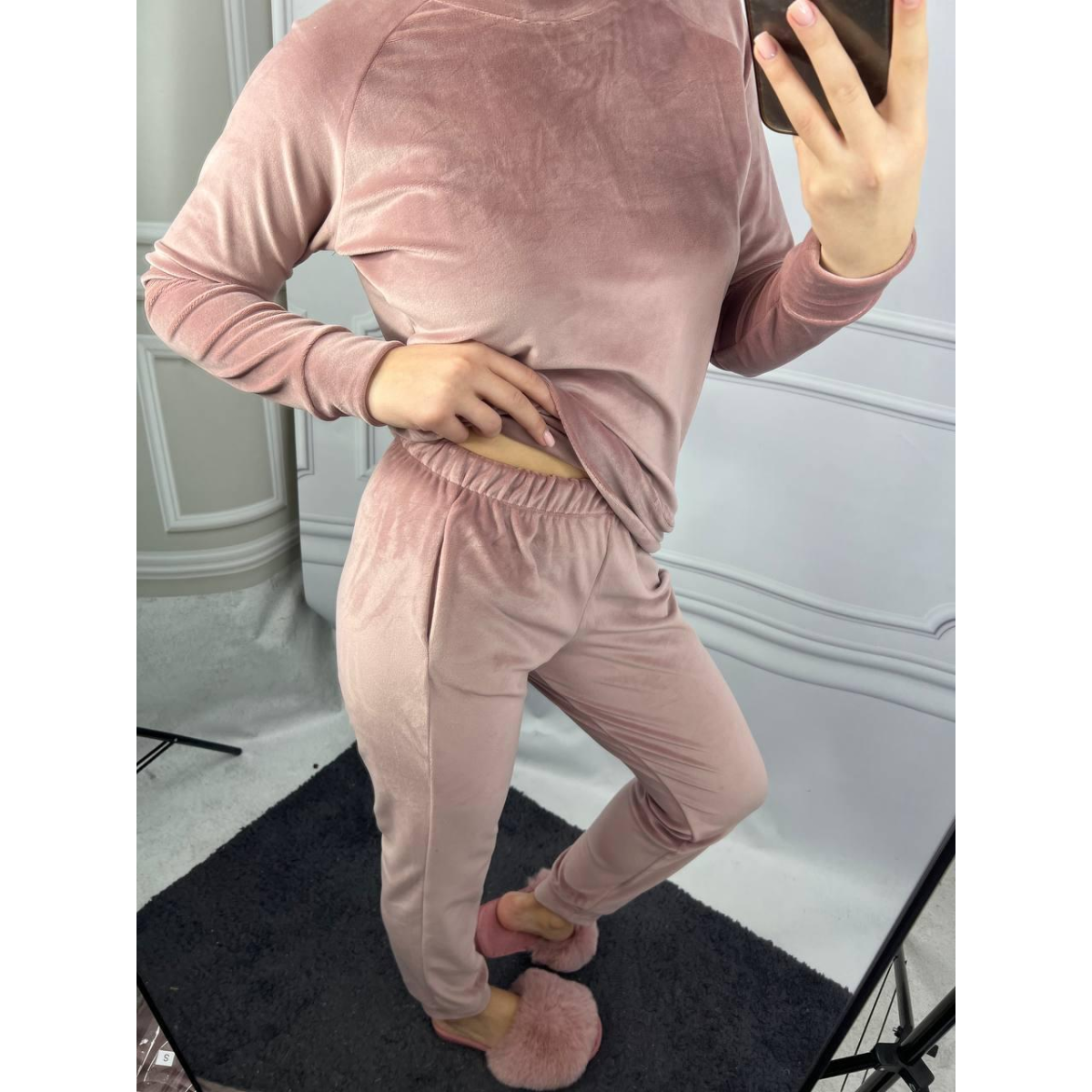 Жіночий спортивний велюровий костюм Рожева пудра, XS
