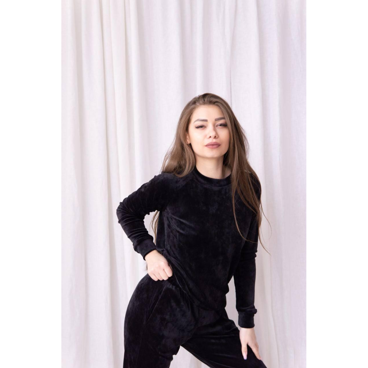 Жіночий спортивний велюровий костюм Чорний, XS