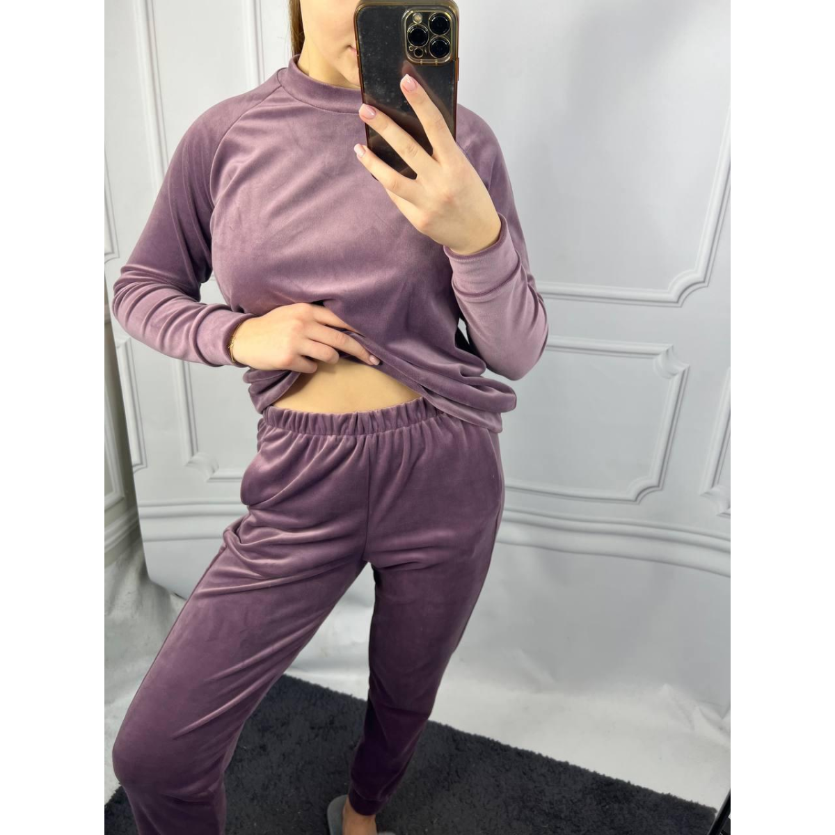 Жіночий спортивний велюровий костюм Ліловий, S