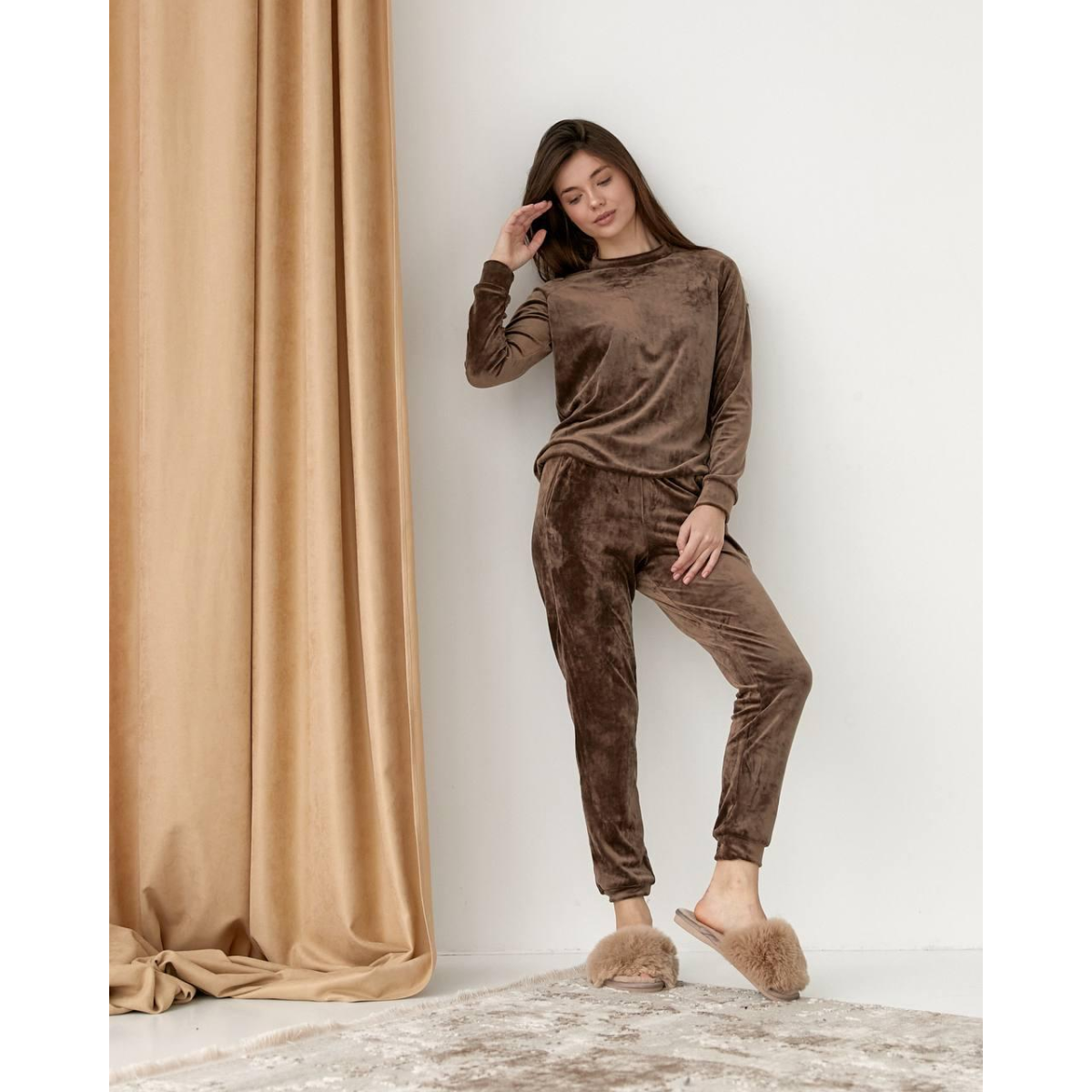 Жіночий спортивний велюровий костюм Коричневий, M