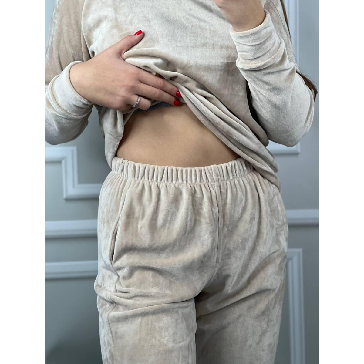 Жіночий спортивний велюровий костюм Світло-бежевий, L