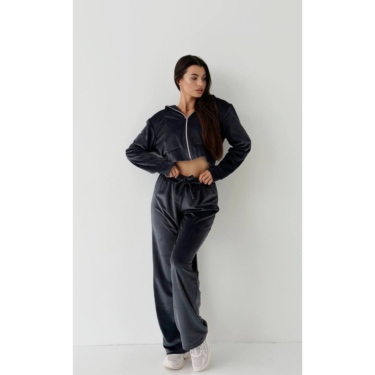 Жіночий велюровий костюм Графітовий, XS-S