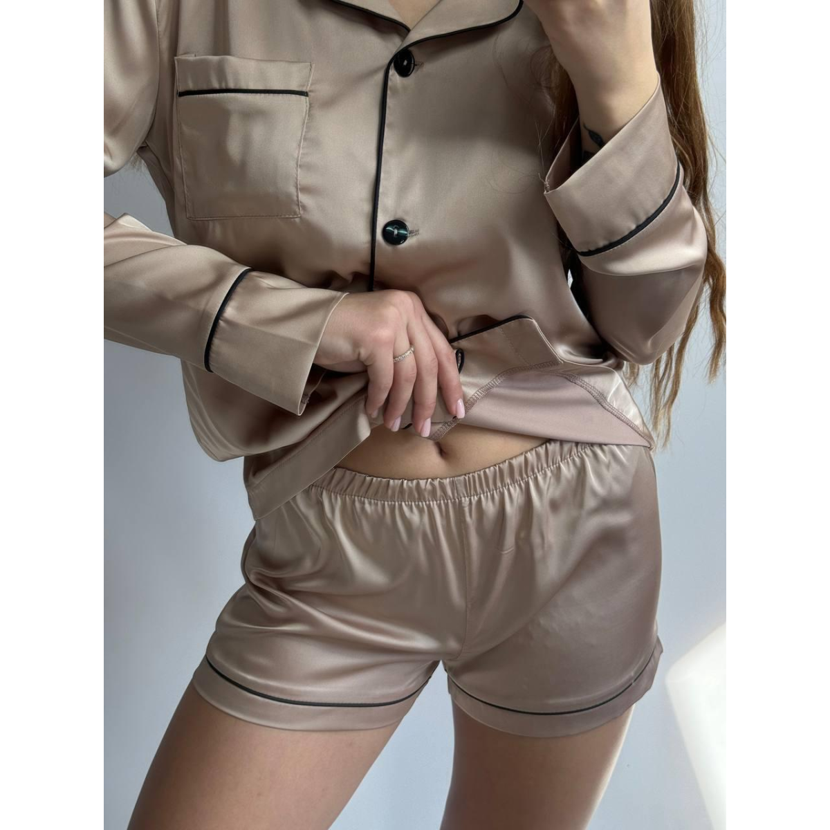 Комплект шовковий трійка сорочка з шортами та штанами Беж, S