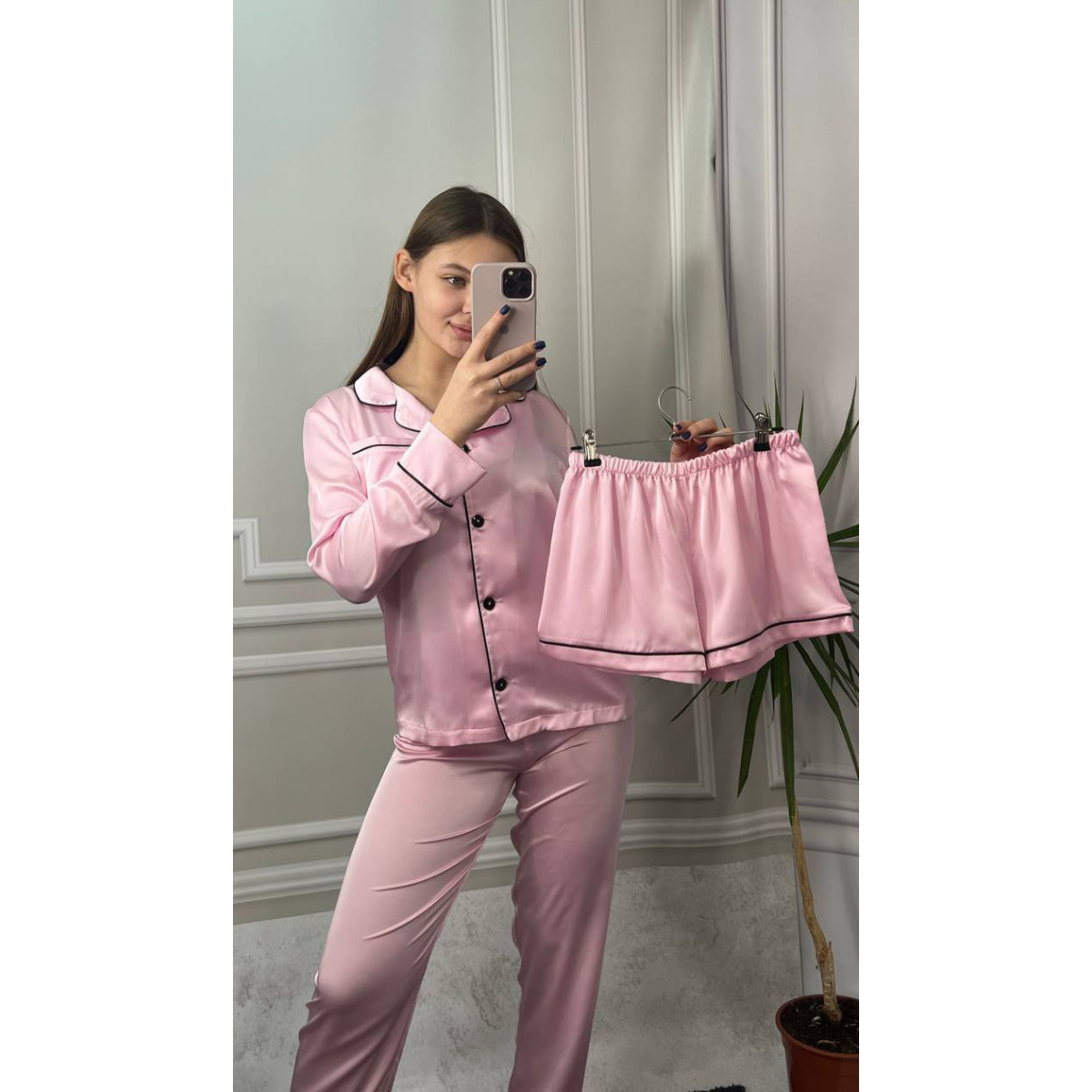 Комплект шовковий трійка сорочка з шортами та штанами Зефірний, XL