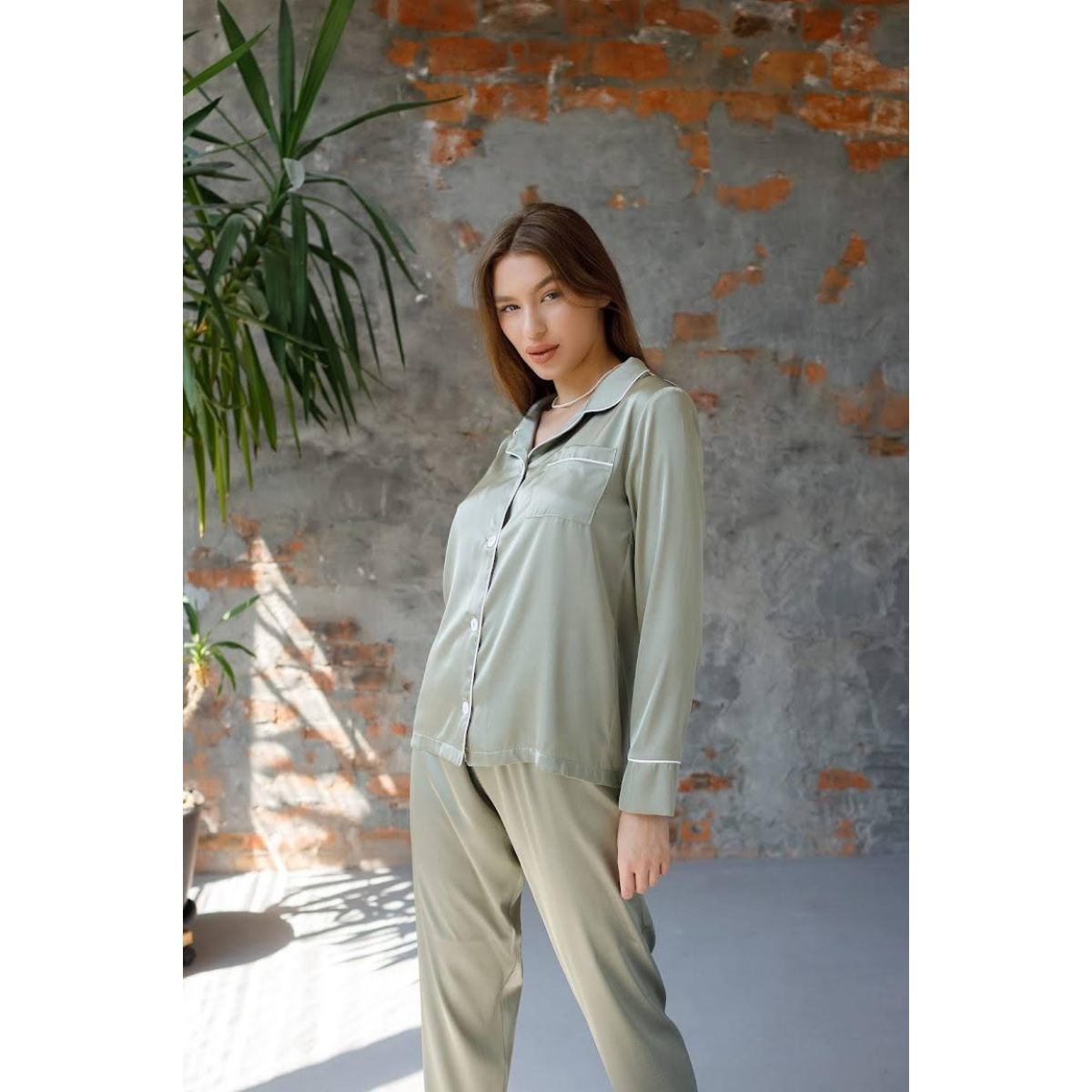 Комплект шовковий трійка сорочка з шортами та штанами Оливковий, L
