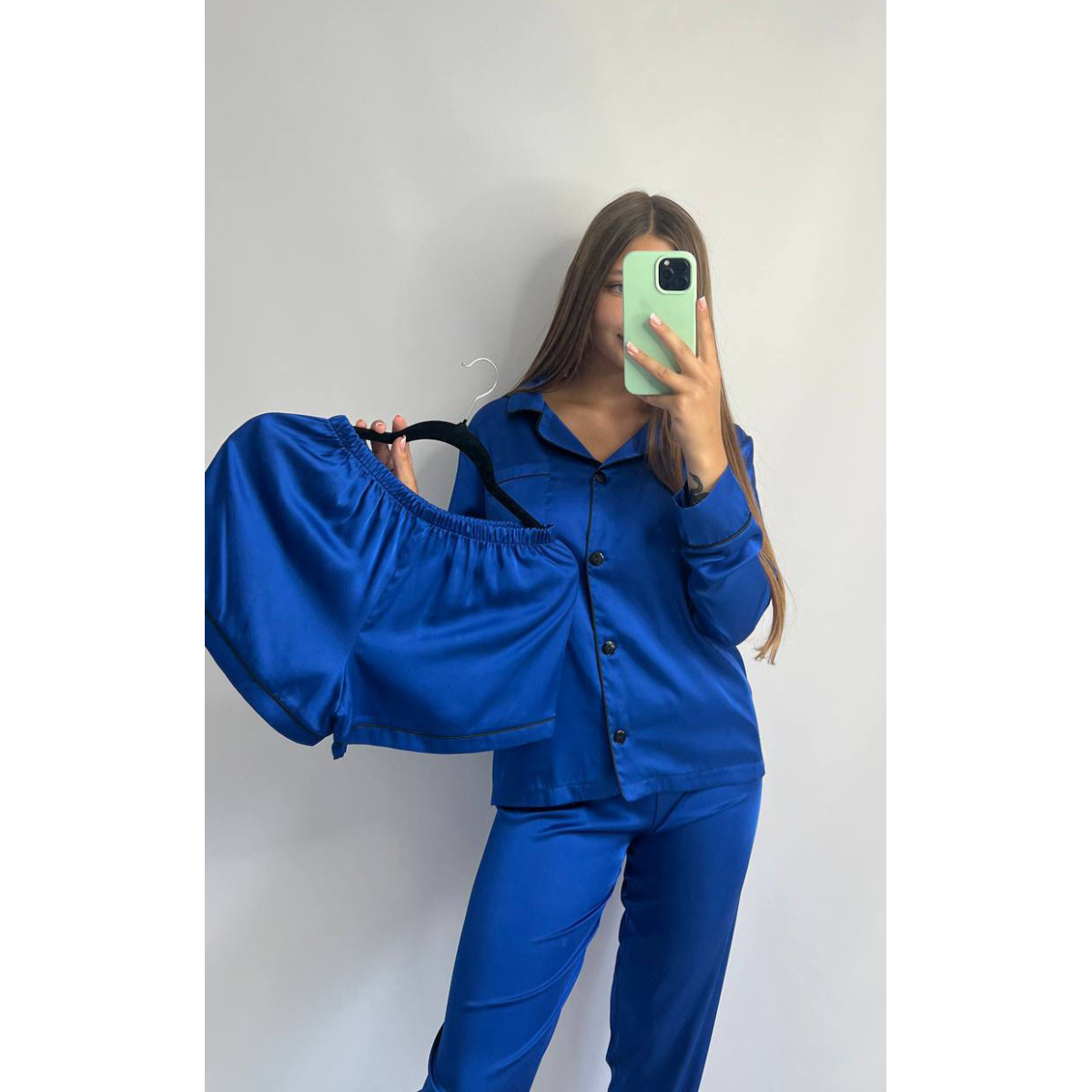 Комплект шовковий трійка сорочка з шортами та штанами Електрик, M