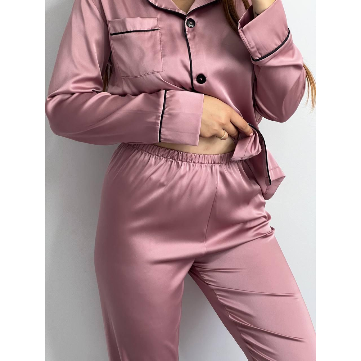Комплект шовковий трійка сорочка з шортами та штанами Темна пудра, S