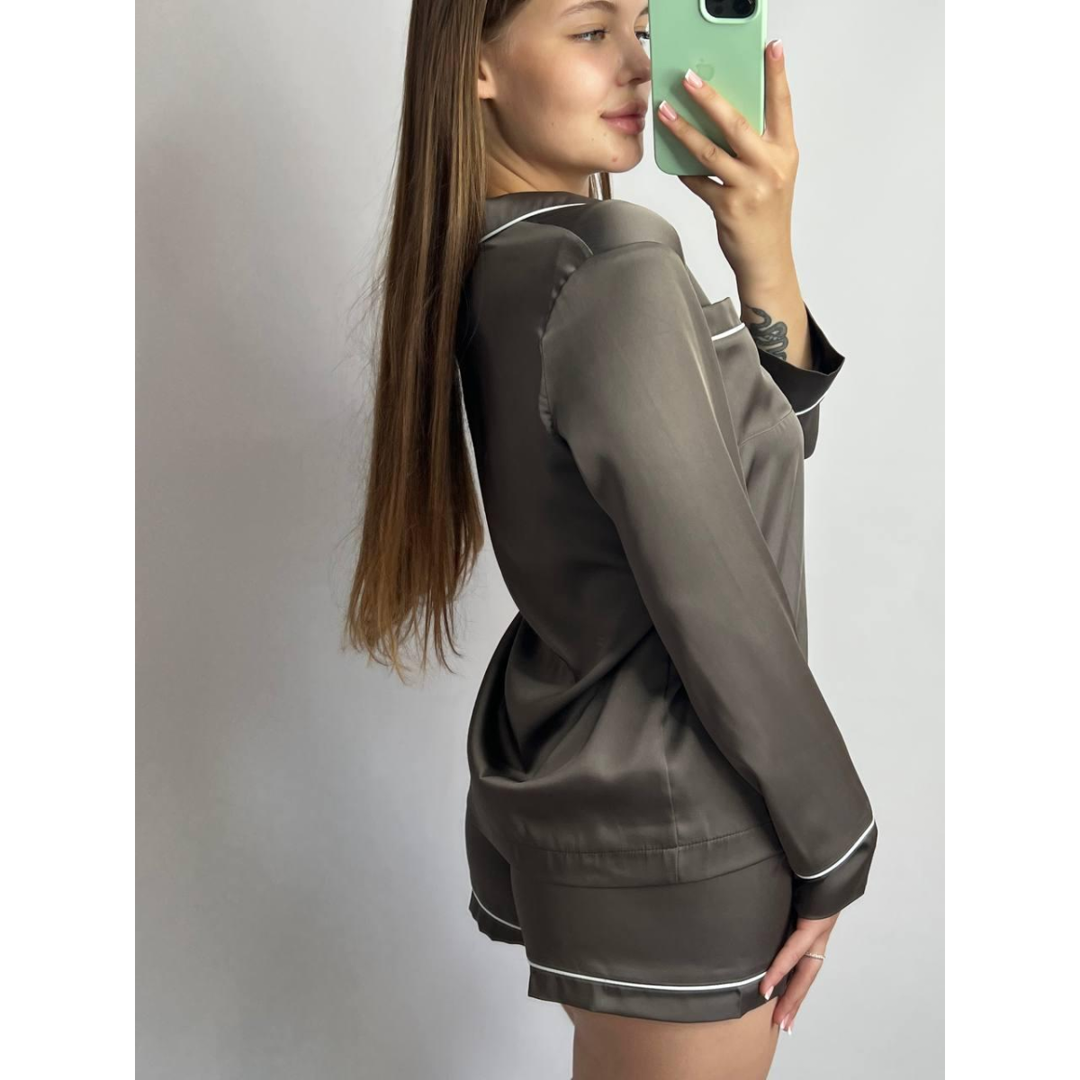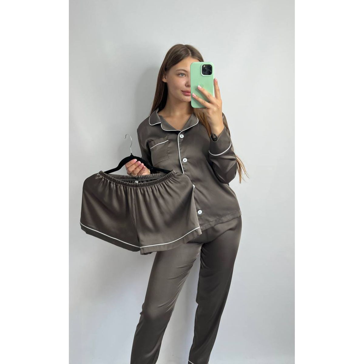 Комплект шовковий трійка сорочка з шортами та штанами Бронза, L