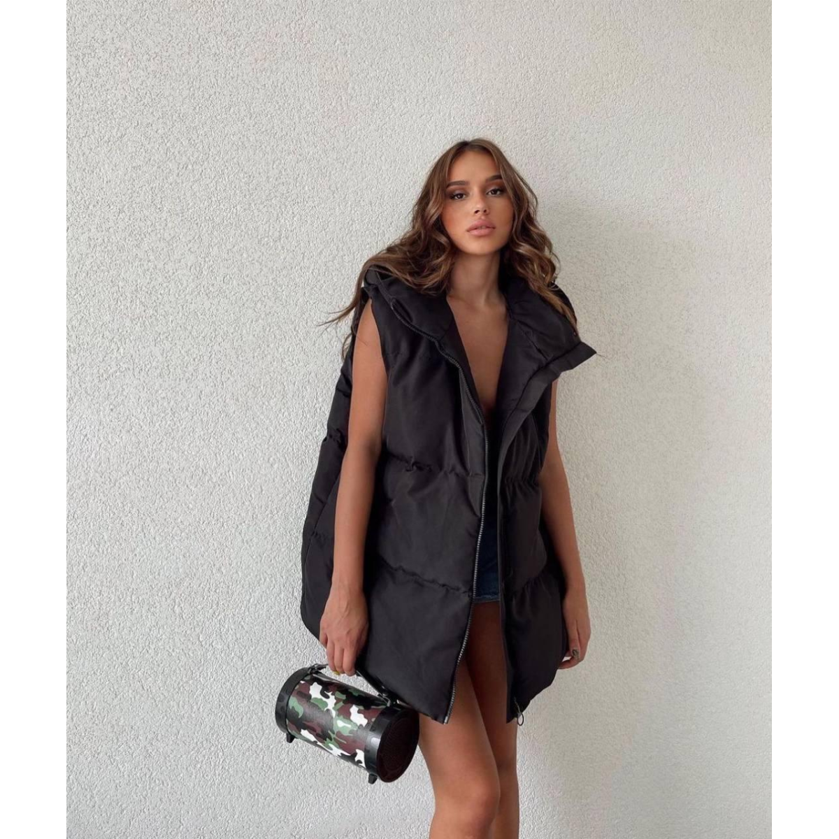 Жіноча жилетка з капюшоном осінній Чорний, 42/46