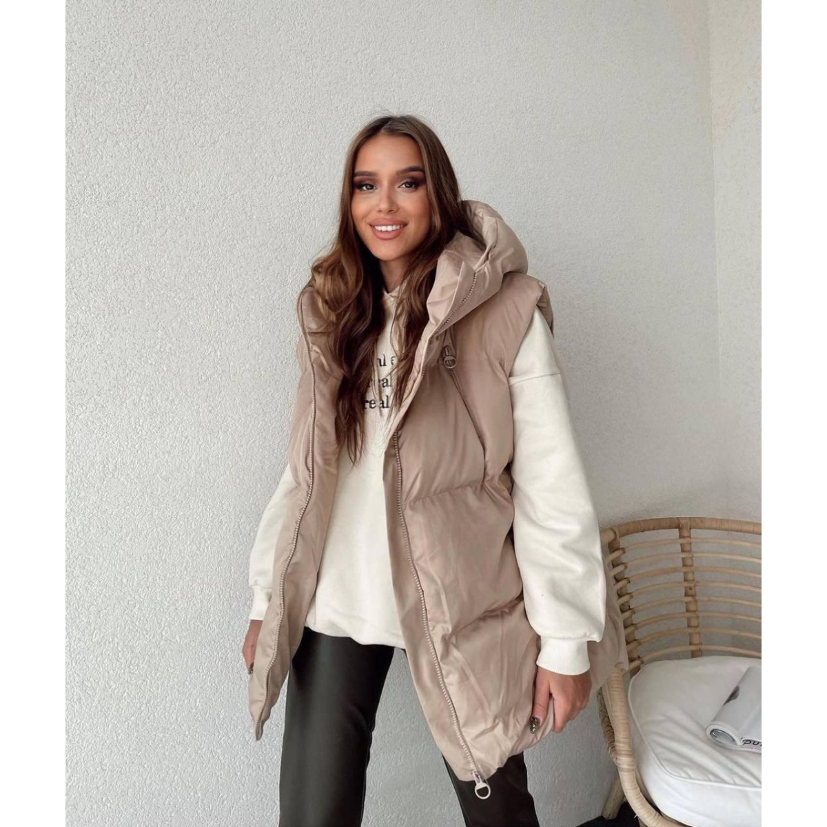Жіноча жилетка з капюшоном осінна Бежевий, 42/46