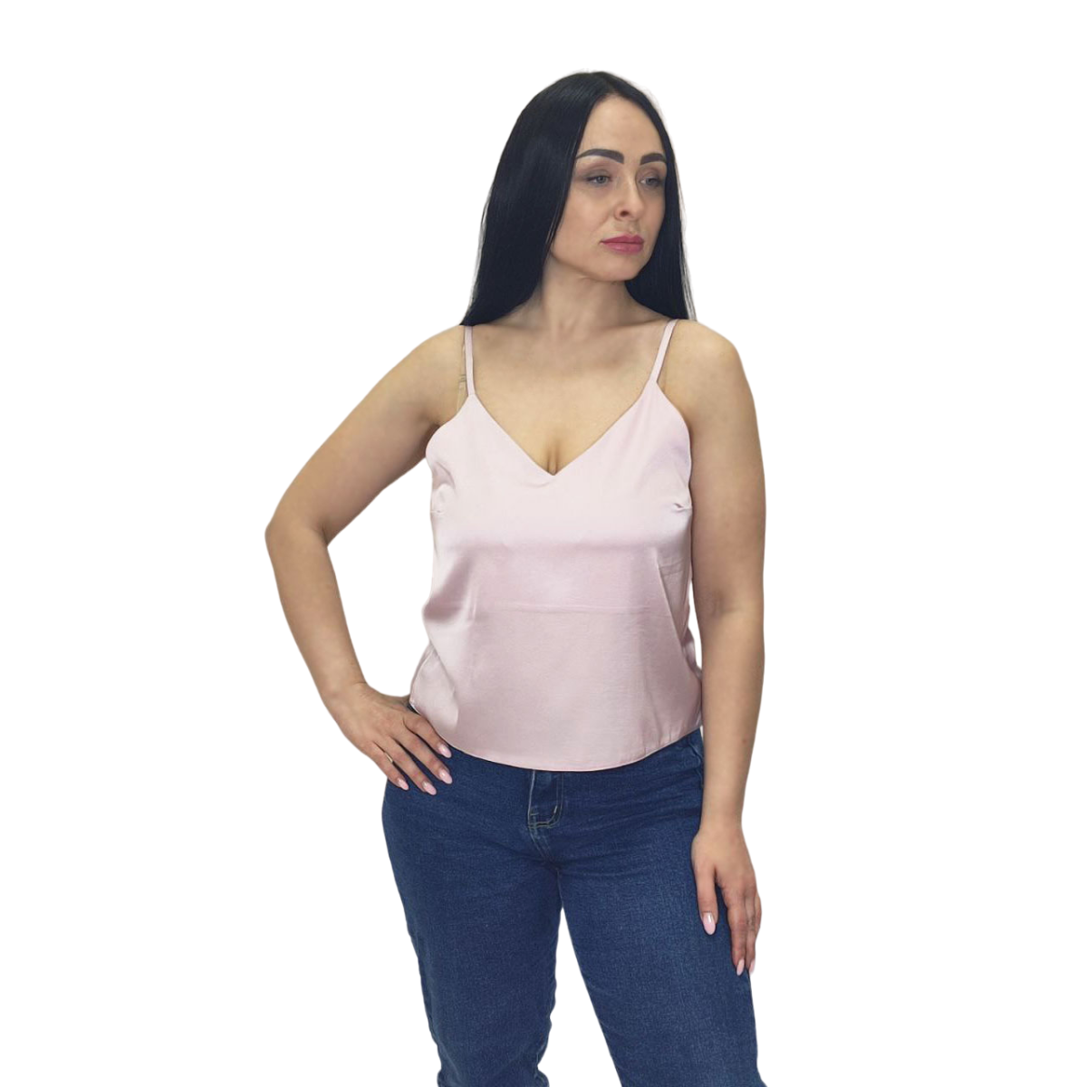 Шовкова майка на тонких бретельках Пудровий, 4XL
