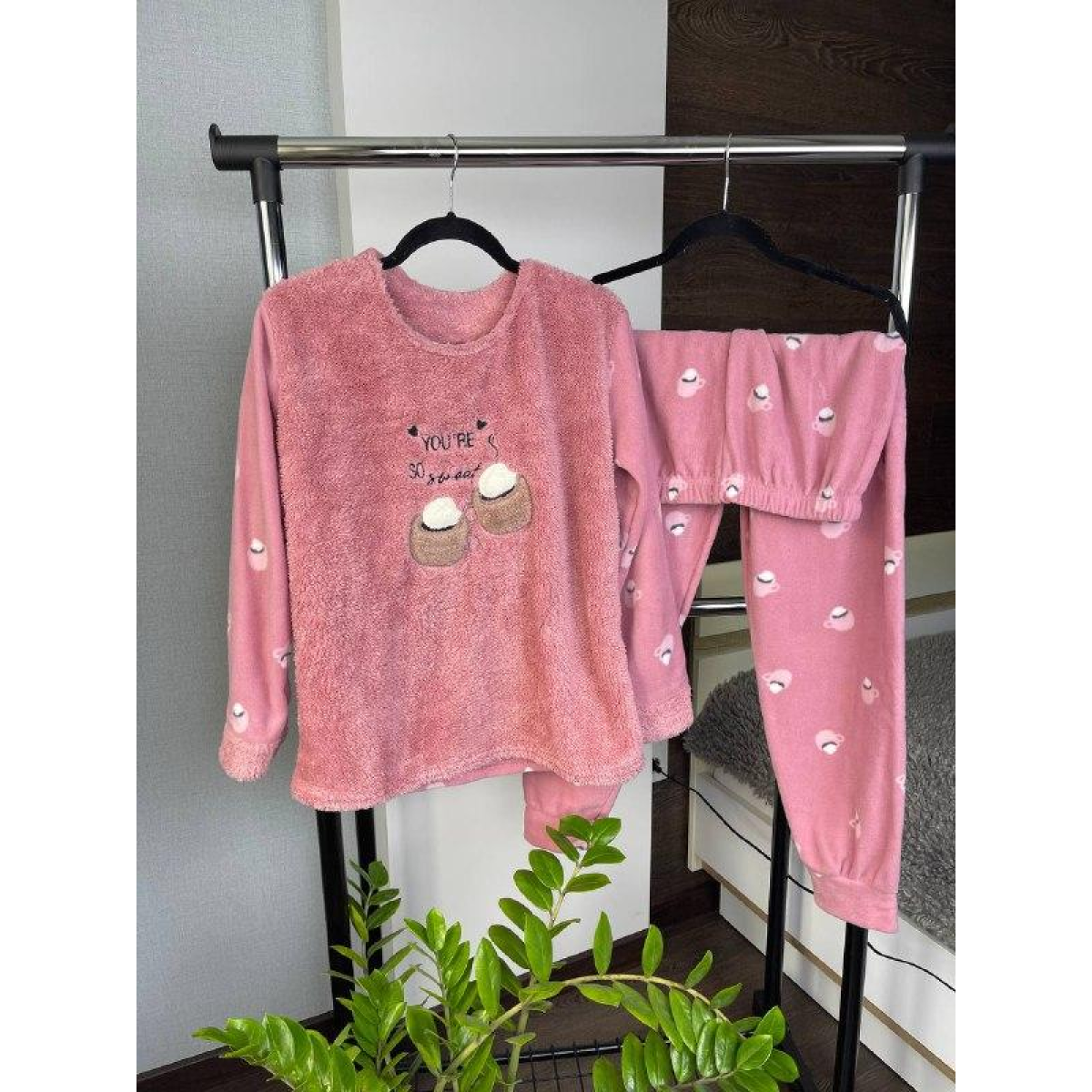 Махрова піжама жіноча Темно-рожевий, XL
