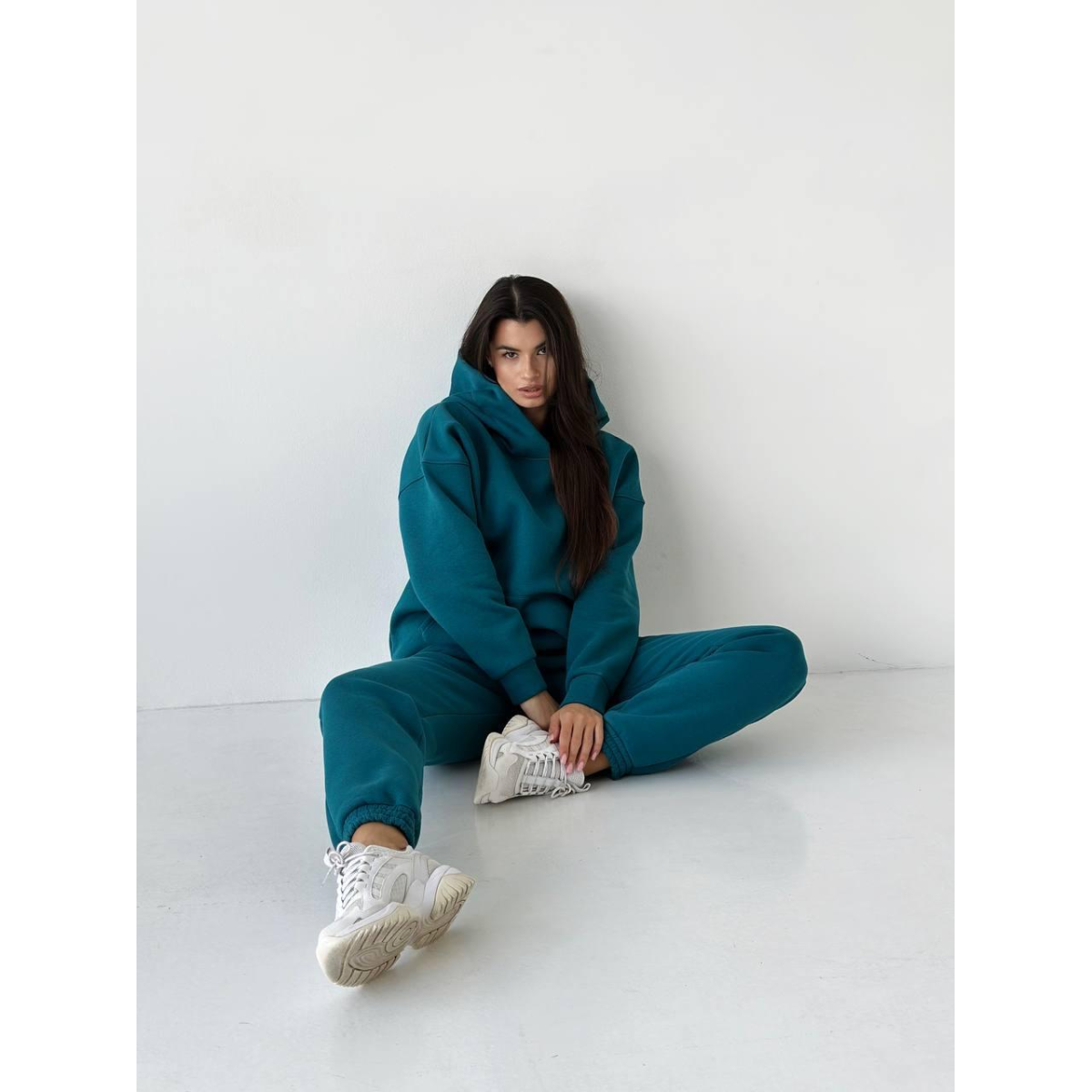 Жіночий спортивний теплий костюм оверсайз на флісі XS, Темна бірюза