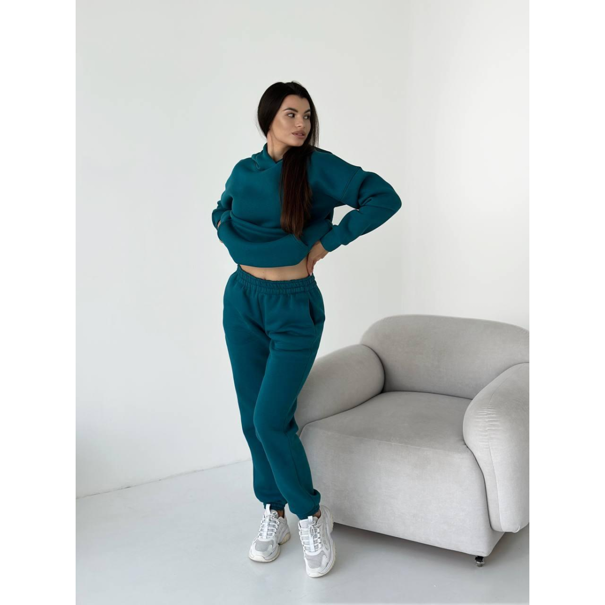 Жіночий спортивний теплий костюм оверсайз на флісі M, Темна бірюза