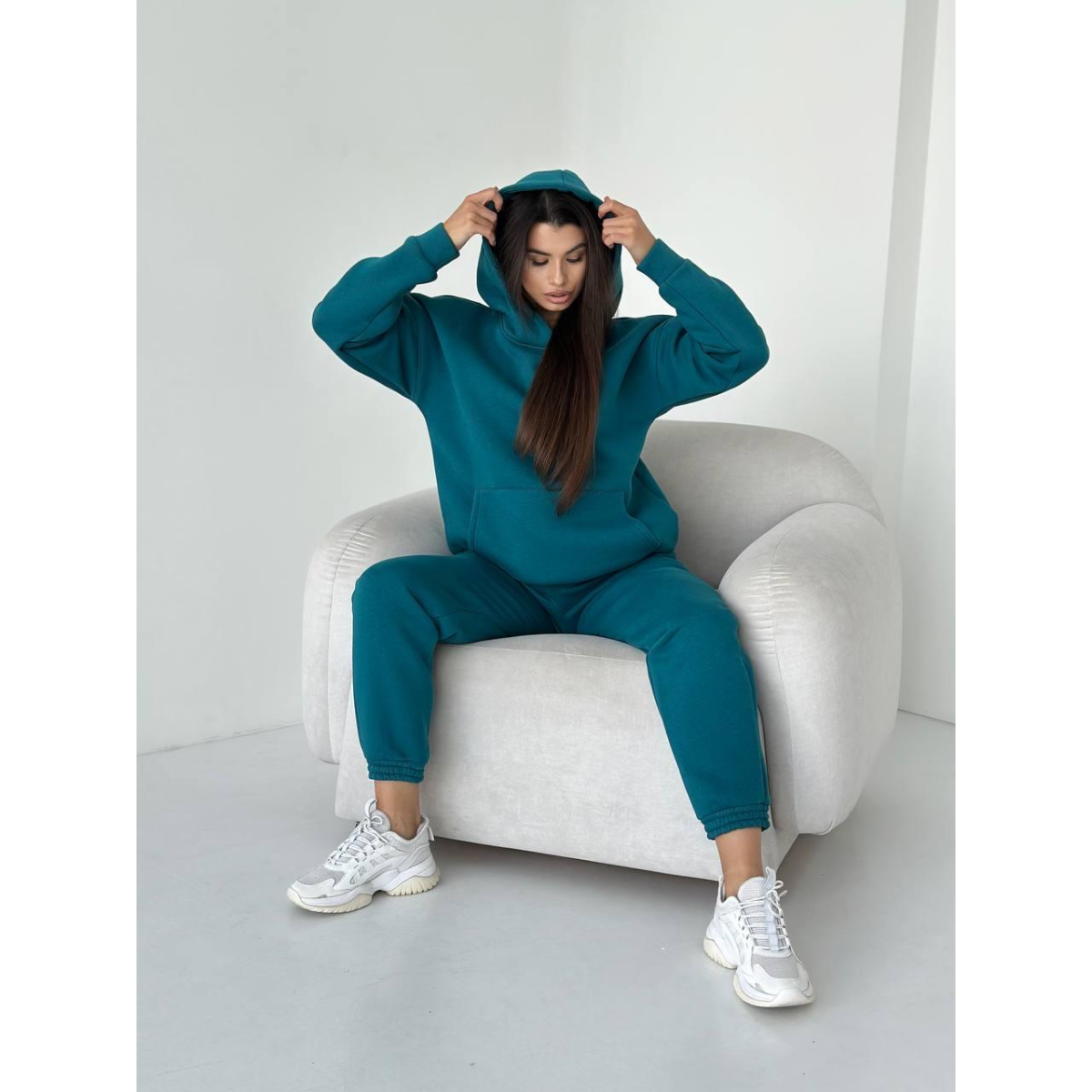 Жіночий спортивний теплий костюм оверсайз на флісі L, Темна бірюза