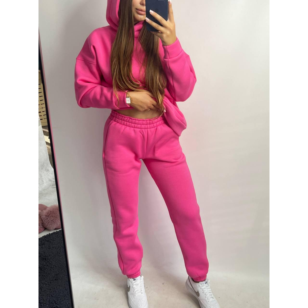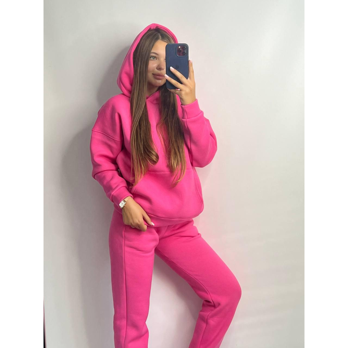 Жіночий спортивний теплий костюм оверсайз на флісі XXL, Рожевий