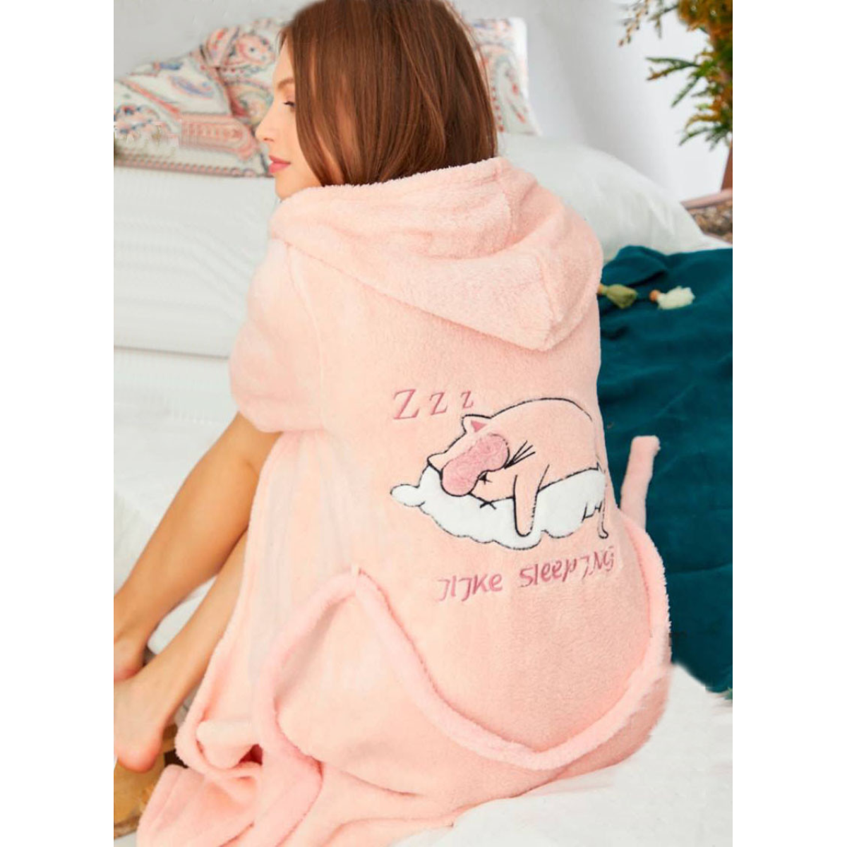 Махровий халат жіночий із капюшоном Персиковий, L